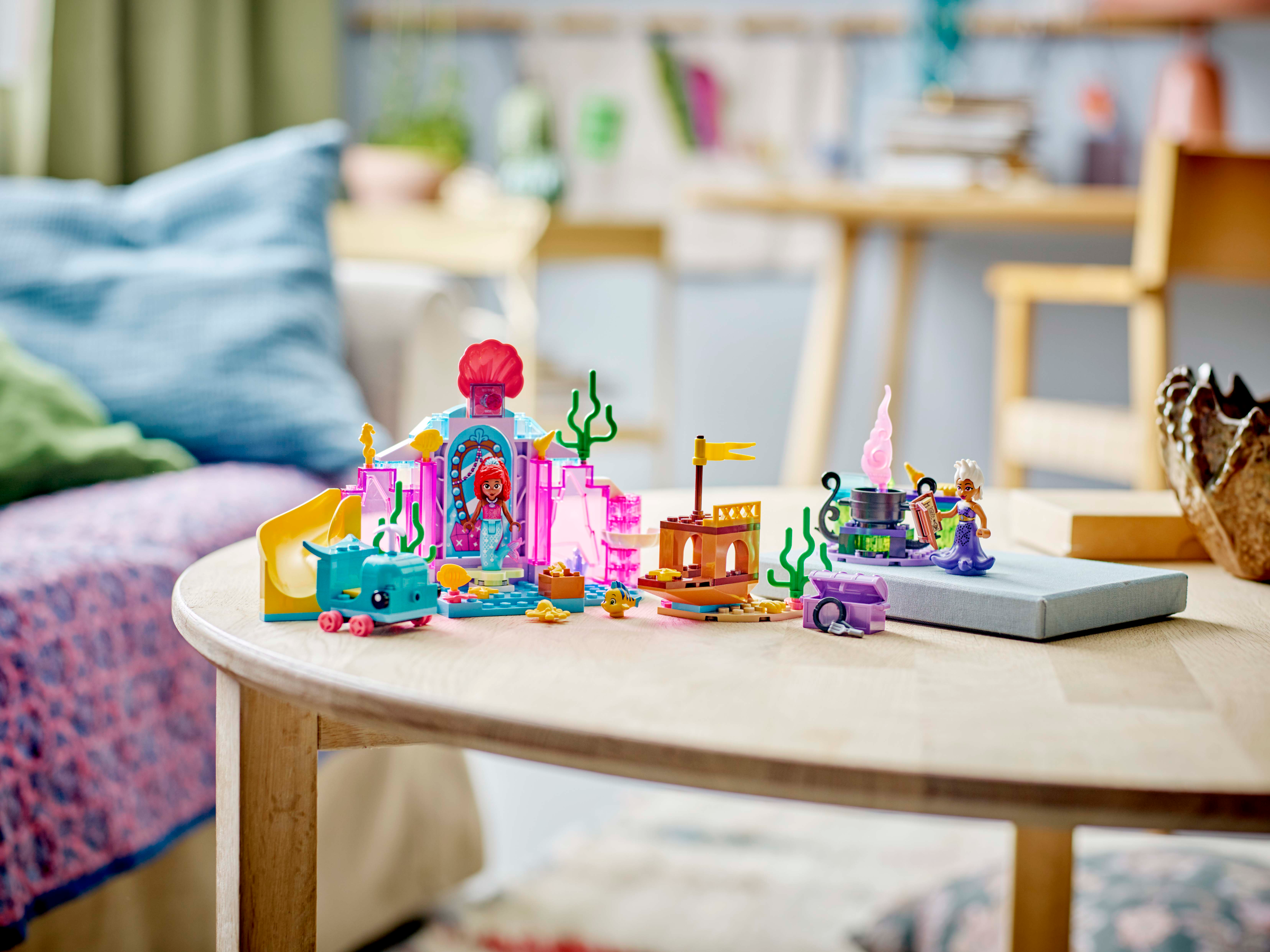 Exploration and play awaits kids aged 4 as they learn to build with this LEGO® ǀ Disney Princess Ariel’s Crystal Cavern (43254) building toy. This buildable mermaid playset gift helps boost kids’ problem-solving skills with creative play. Inside is a cavern with a spinning platform and slide, a whale vehicle, a shipwreck with a treasure chest and a cauldron. It also includes Ursula and Ariel LEGO ǀ Disney mini-doll figures and a Flounder LEGO ǀ Disney fish figure.