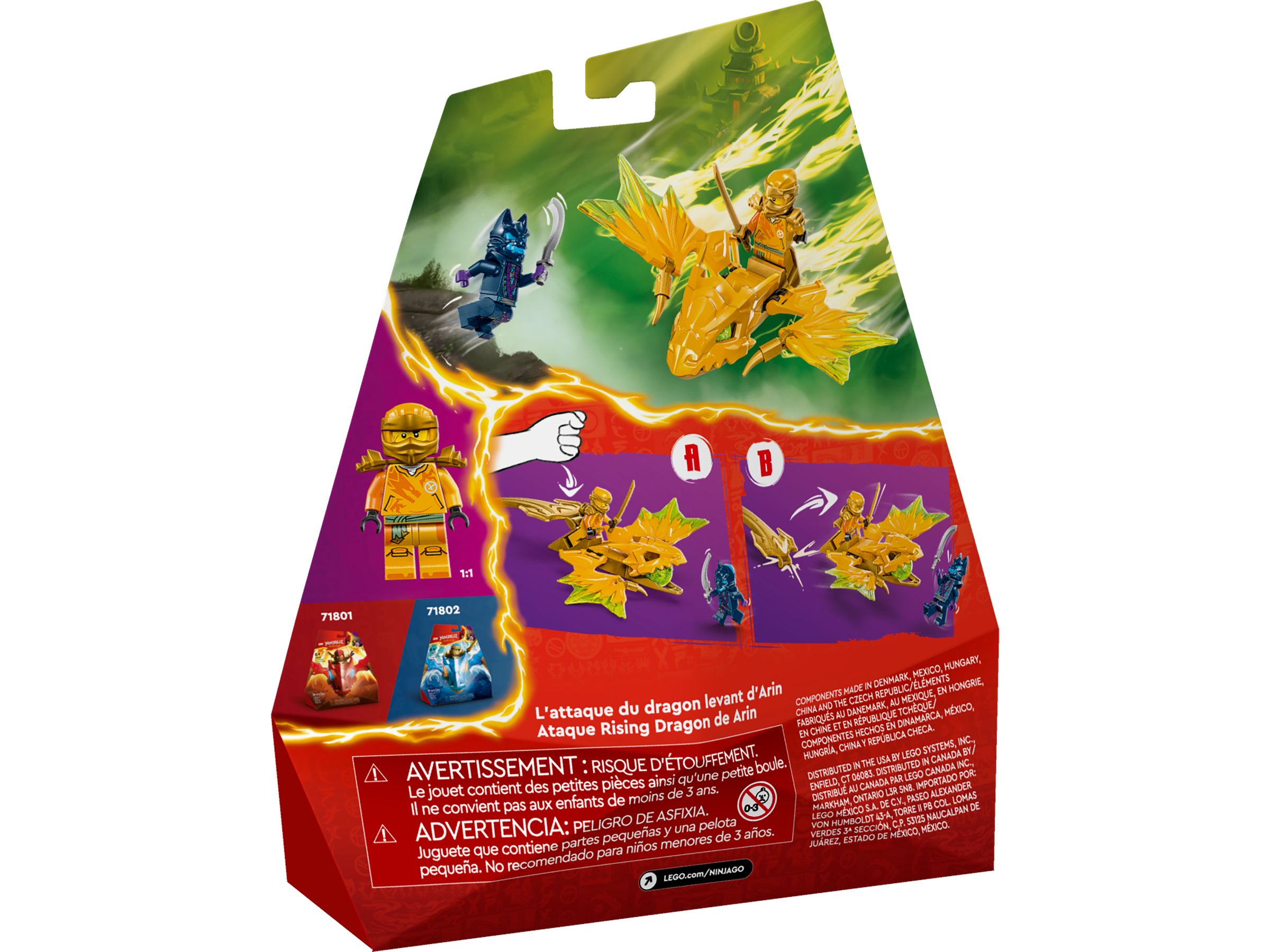Boys and girls aged 6 and up can recreate their favorite scenes from season 2 of the NINJAGO® Dragons Rising TV show with the Arin’s Rising Dragon Strike (71803) ninja toy. Kids will be excited to build the first-ever LEGO® NINJAGO dragon action toy before they slam down the dragon’s golden tail and watch as it launches into epic battles.