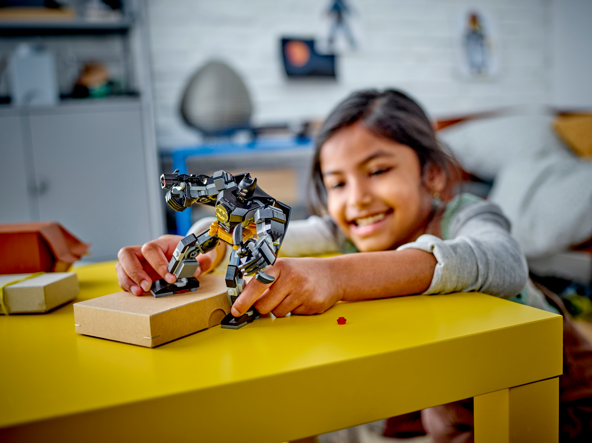 Kids insert the LEGO® Batman minifigure into the mech toy’s opening cockpit. The mech figure holds a buildable Batarang™ and has a stud launcher on its arm. On its back is a jetpack covered by a 2-part cape, which can be moved into various positions. The minifigure wears a fabric cape and holds another Batarang, which can be stored on the right arm of the mech. The mech’s jointed arms, legs and hands let fans of Batman and super-hero figures enjoy endless hands-on battle action. Kids can expand the play possibilities even further by combining this Batman super-hero toy with other LEGO mechs in the range (sold separately). For added digital fun, builders can zoom in, rotate models in 3D and track their progress using the fun, intuitive LEGO Builder app.