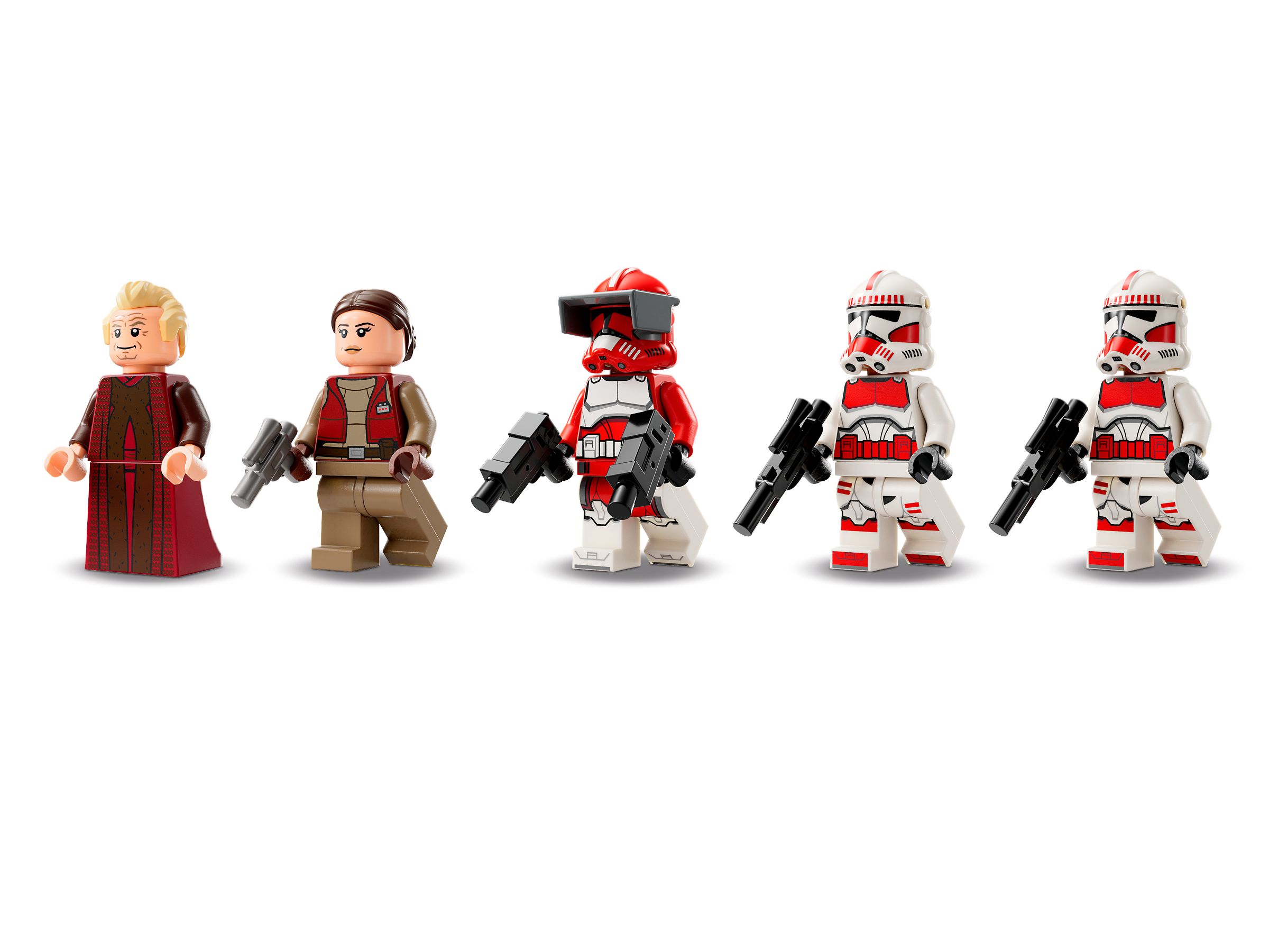 Fans can take command of their own Star Wars: The Clone Wars missions with this LEGO® brick Coruscant Guard Gunship (75354). It features 2 pilot cockpits, 2 stud shooters, 2 adjustable cannons and a handle for flying. The rear hatch and sliding side panel give easy access to the cabin where there is space for troopers. A top Star Wars™ gift idea for kids aged 9 and up, the set also includes 5 LEGO minifigures, including Commander Fox, Chancellor Palpatine and Padmé Amidala, plus 3 blaster pistols and 2 blasters for action play.