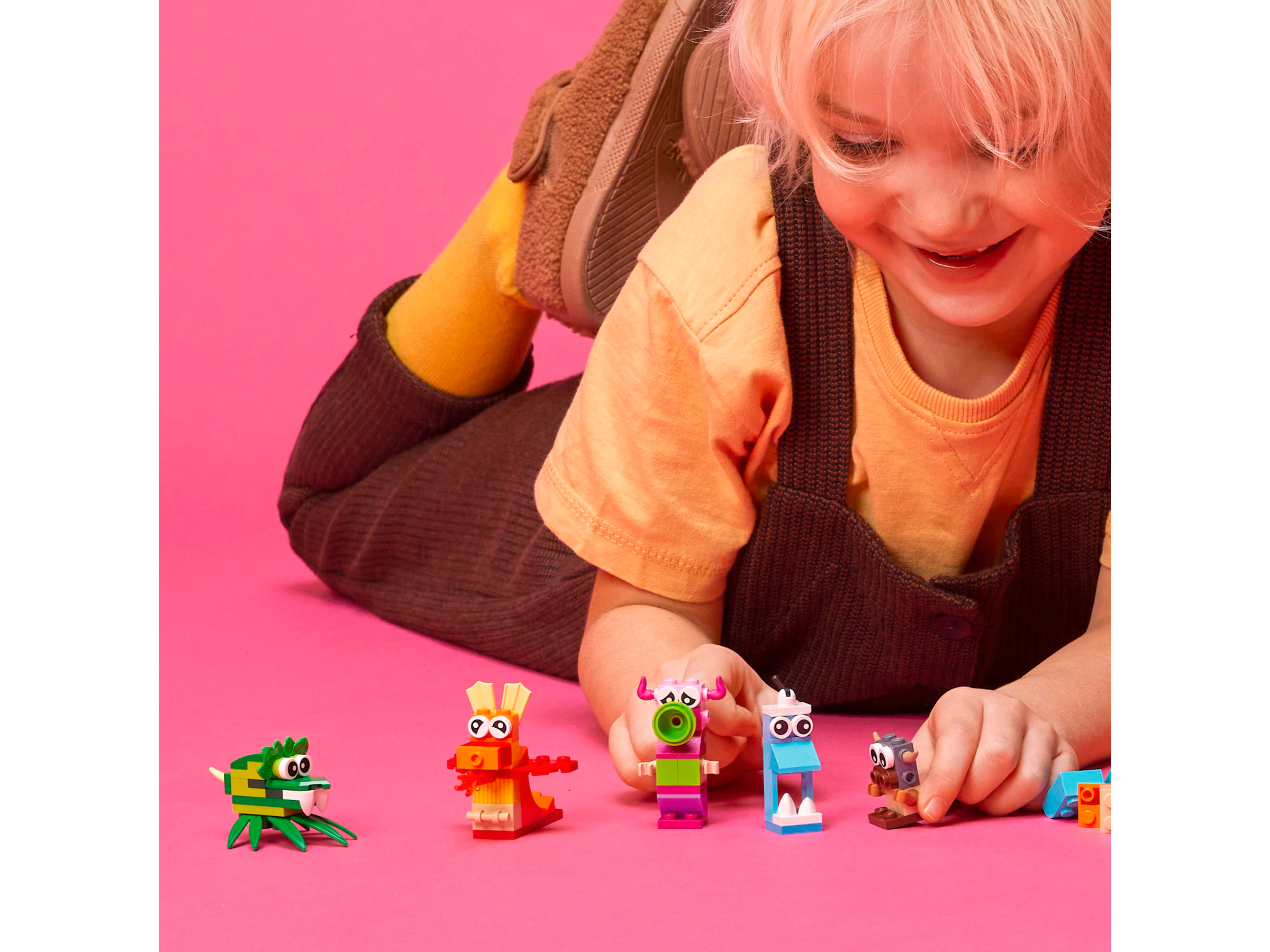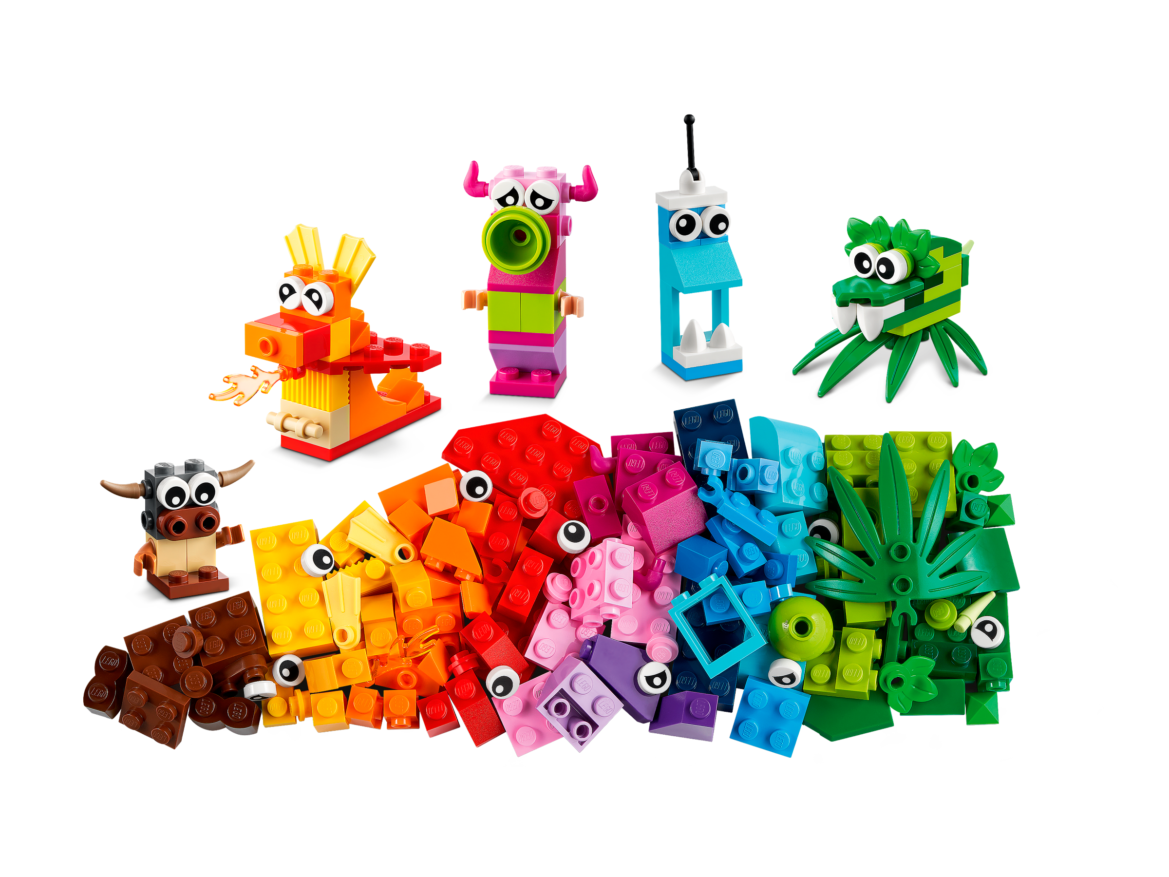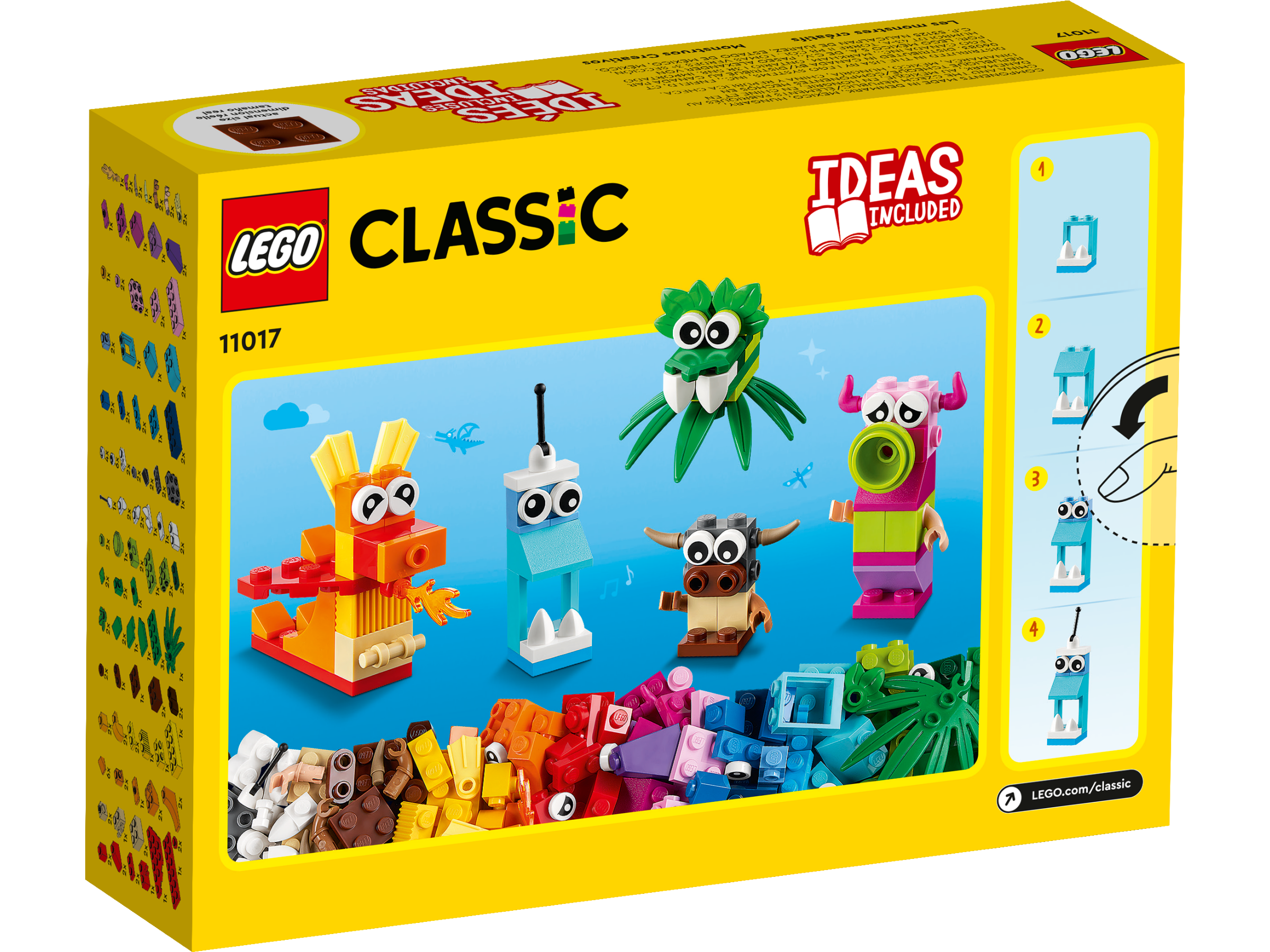 Kids, friends and families can enjoy endless hours of creative fun with this LEGO® Classic Creative Monsters (11017) playset. It comes with a rainbow of colorful LEGO pieces, 5 toy monster build ideas and a bag of extra bricks for free building!