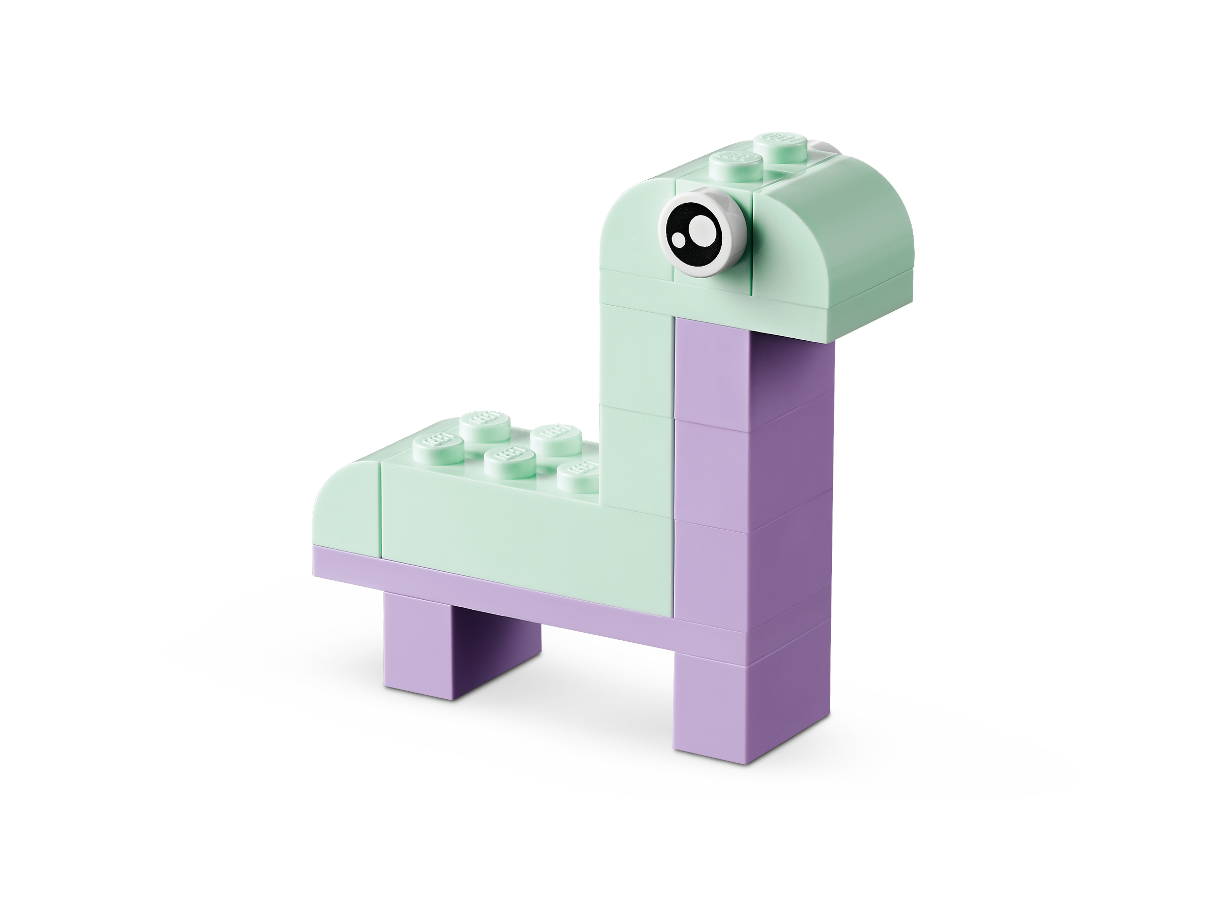 This creative construction kit contains 333 bricks in a range of shapes, sizes and pastel colors. 18 of the bricks feature expressive eyes that kids can use to bring their creations to life. Clear printed building instructions are included for 5 easy-to-assemble models: a cloud, an ice cream, a dinosaur, cat and a robot. As their creative confidence grows, kids can explore endless free-building fun. A digital version of the set’s building instructions can also be found within the LEGO Builder app.