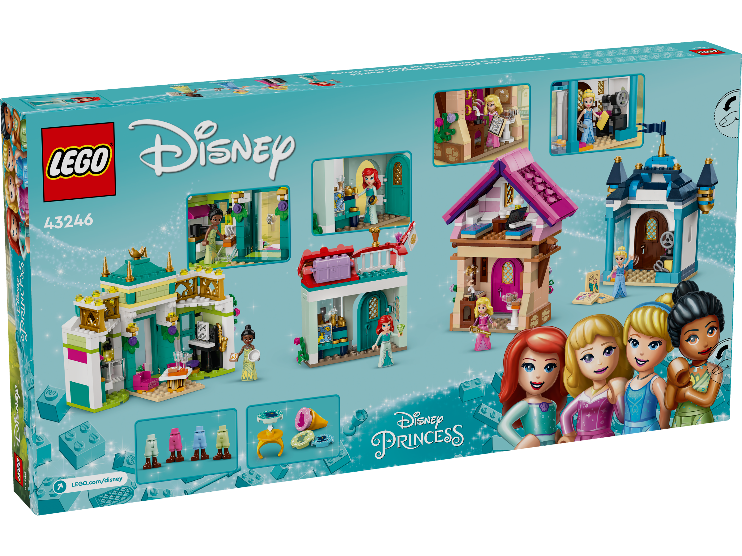 Captivate and entertain Disney Princess fans and kids aged 6 and over with this detailed LEGO® ǀ Disney Princess: Disney Princess Market Adventure (43246) construction playset. The box contains 4 buildable toy buildings, one with a small storage space on top and a small model with a flowerpot, bench and fountain. It also includes Tiana, Aurora, Cinderella and Ariel LEGO ǀ Disney mini-doll figures, plus 2 collectible rings with 4 decorations that can be changed again and again. Kids can design a market adventure then role-play endless stories or imagine new escapades with loads of play starter accessories.