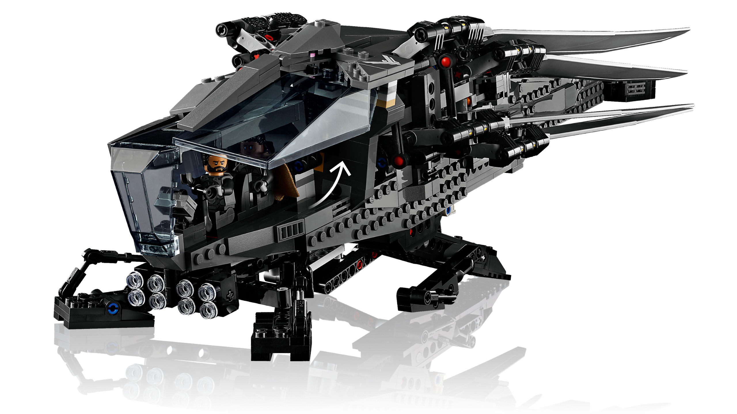 This premium-quality replica features fold-out, flappable wings, deployable landing gear and an opening cockpit. The set also includes 8 iconic characters from the film: Paul Atreides, Lady Jessica, Gurney Halleck, Chani, Leto Atreides, Liet Kynes, Duncan Idaho and Baron Harkonnen in his long robe.