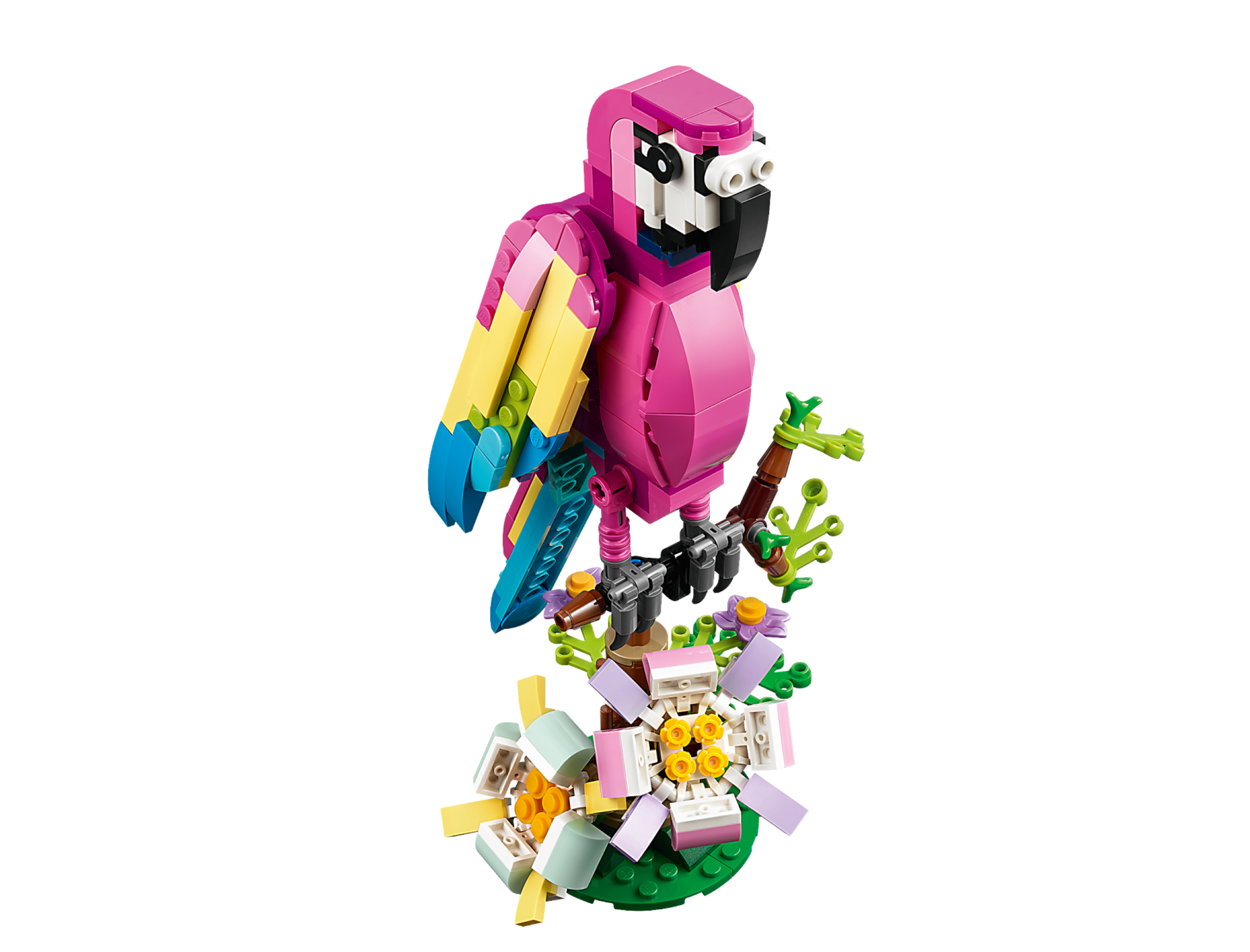 Little builders and passionate animal fans aged 7 can travel deep into the rainforest for action-packed stories with this LEGO® Creator 3in1 Exotic Pink Parrot (31144) building set. It features a vivid pink and blue parrot that can fully rotate its body while sitting on a tree branch and move its wings and tail.