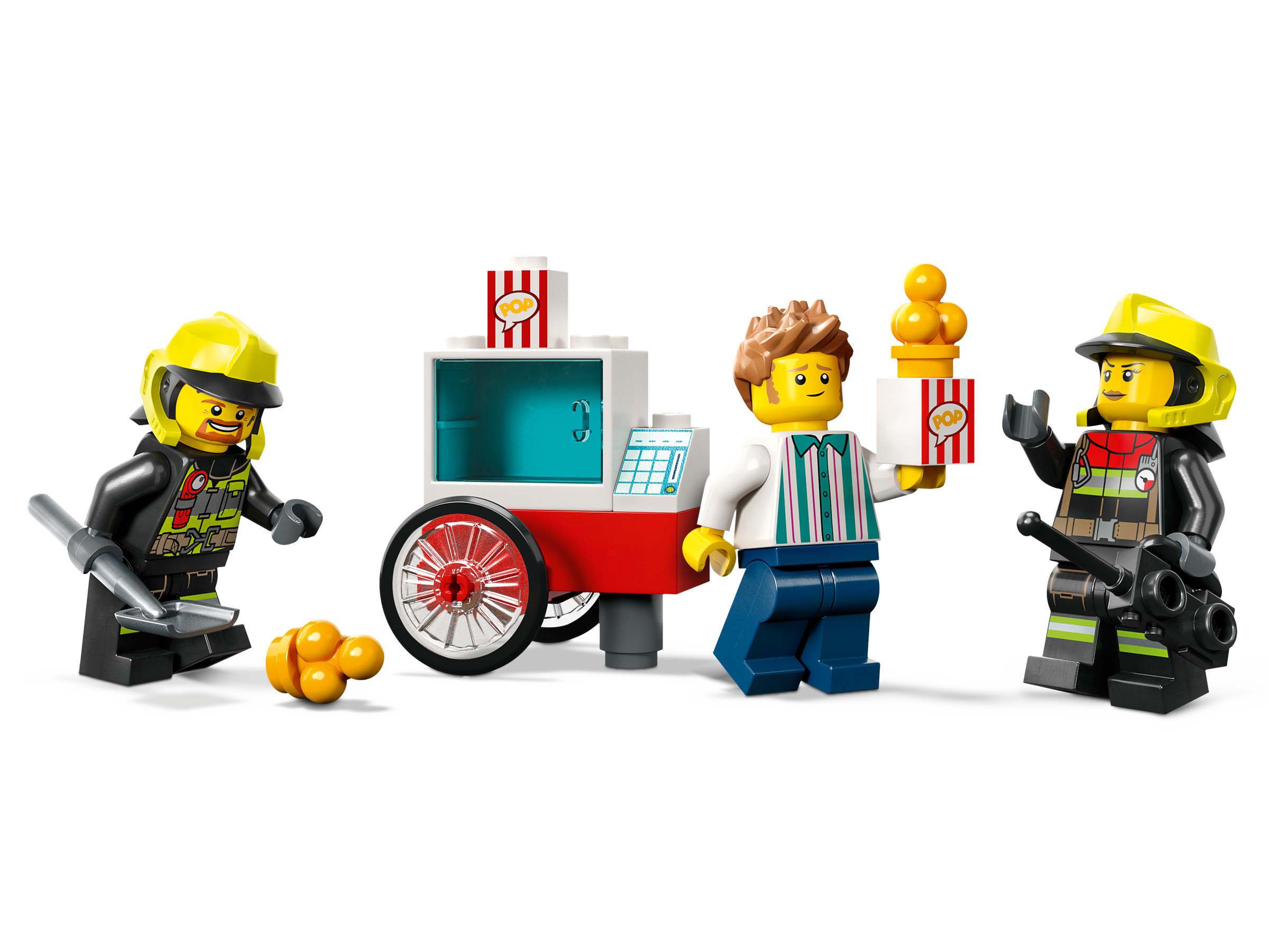 Spark kids’ imaginations with the LEGO® City Fire Station and Fire Engine (60375) playset, featuring a toy fire station with sleeping quarters, a garage and a fun emergency slide. Kids also get a cool fire engine with a flexible hose and roof ladder. Just add the popcorn cart, a few LEGO flames and the vendor and firefighter minifigures for hours of action-packed play.