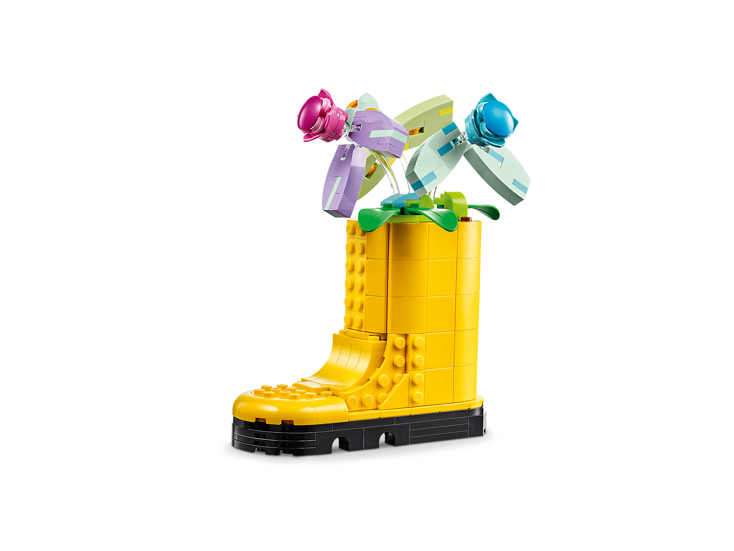 Girls and boys aged 8 and over can rebuild this nature toy into a yellow welly boot filled with 3 flowers with movable petals, or 2 cute yellow toy birds on a flower-covered perch, and then display each model proudly in their room.