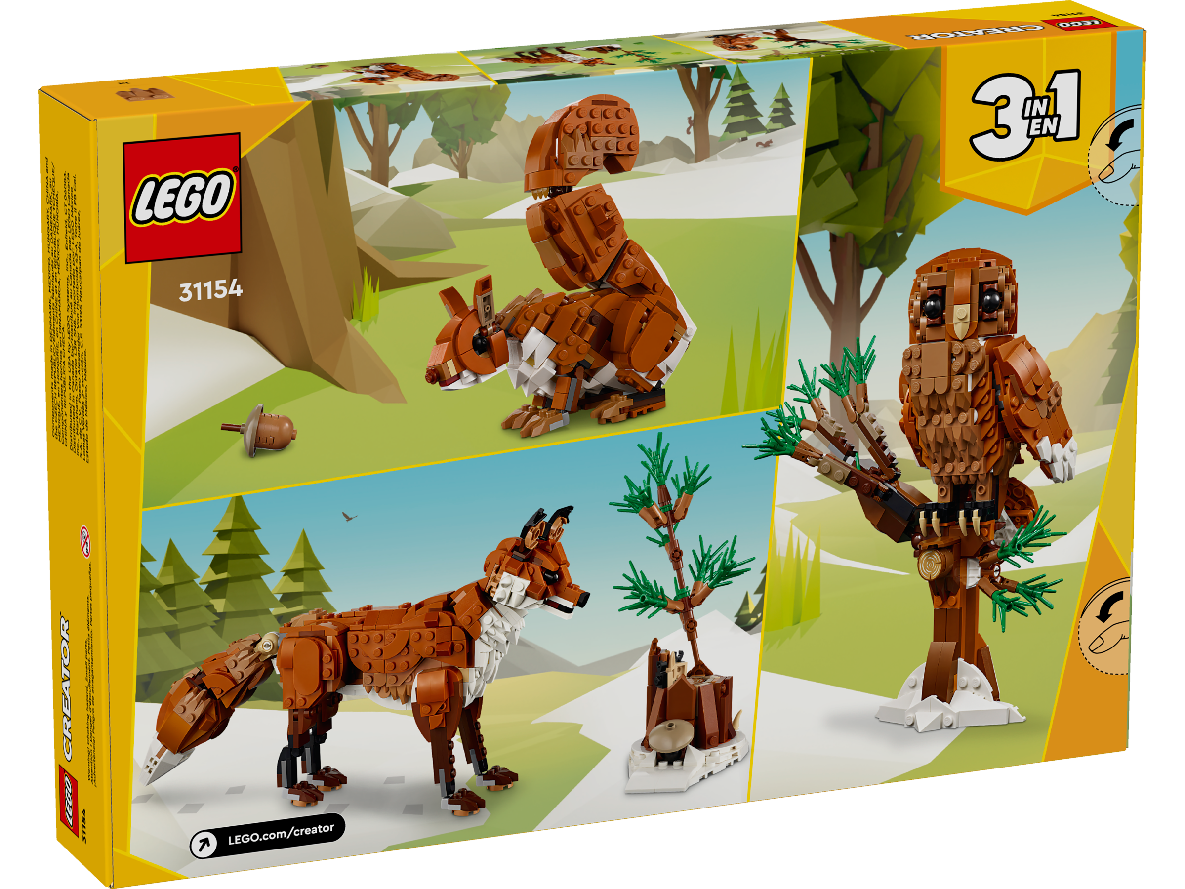 Magical woodland adventures await boys and girls aged 9 when they build, play with and display the 3 different LEGO® animal toys of this Creator Forest Animals: Red Fox (31154) 3in1 playset. It features a highly posable red fox toy that can move its head, neck, legs, paws and tail. It can sit or stand and comes with a snow-covered tree stump and spruce tree stand.