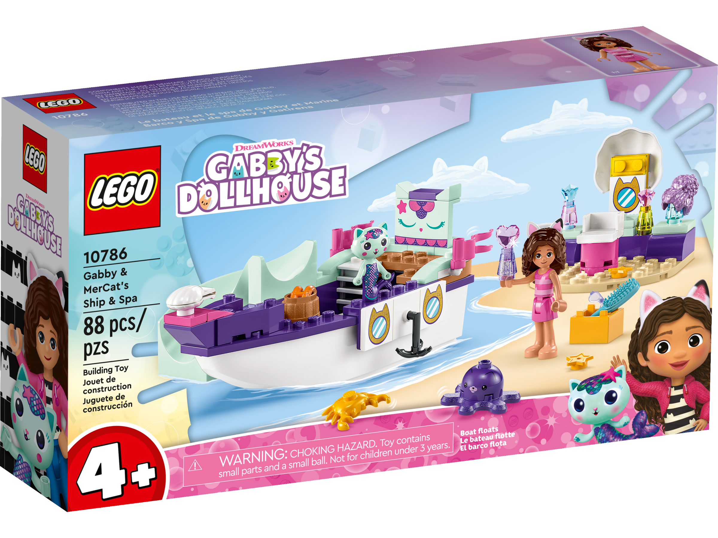 LEGO® Gabby & MerCat’s Ship & Spa (10786) for kids aged 4 is all about fun with friends, looking great and luxurious treats! Fans of DreamWorks Animation’s Gabby’s Dollhouse are sure to love this glamorous playset.