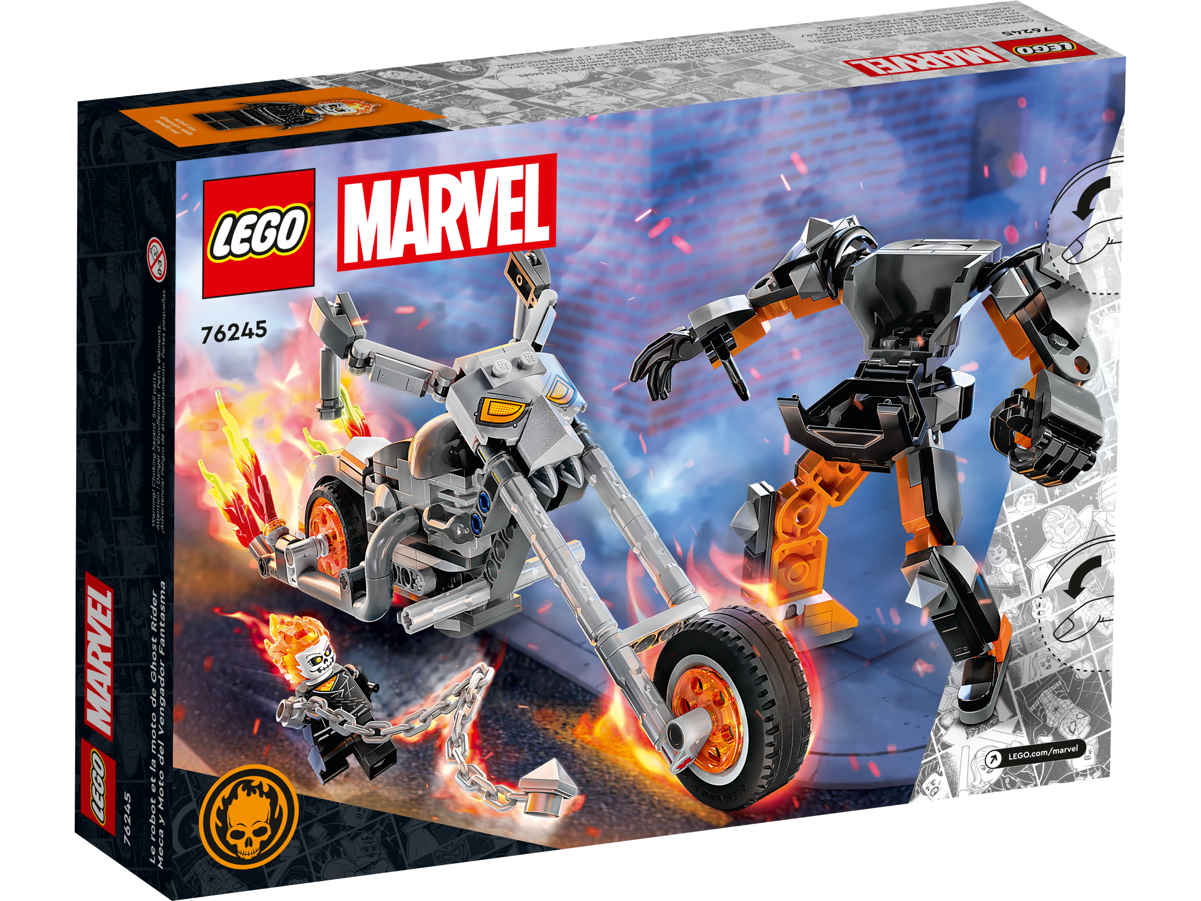 Treat Super Hero fans aged 7 and up to mega motorcycle adventures with the large-scale LEGO® Marvel Ghost Rider Mech & Bike (76245).