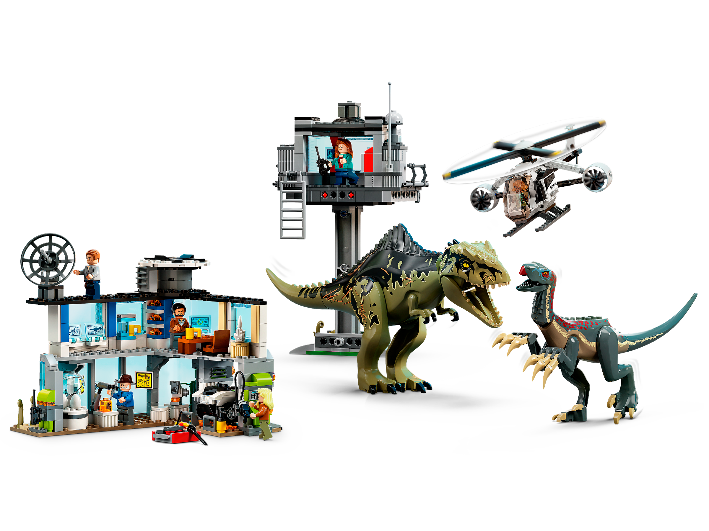 Jurassic World: Dominion fans can relive epic movie action with the awesome Giganotosaurus & Therizinosaurus Attack (76949) toy playset. A cool gift for trendsetting kids who love dinosaurs, it features 2 new-for-April-2022 posable toy dinosaur figures, a buildable HQ with a detailed lab, a garage for the all-terrain buggy, an observation tower with collapsing platform function, a helicopter with spinning rotors and a cargo compartment.