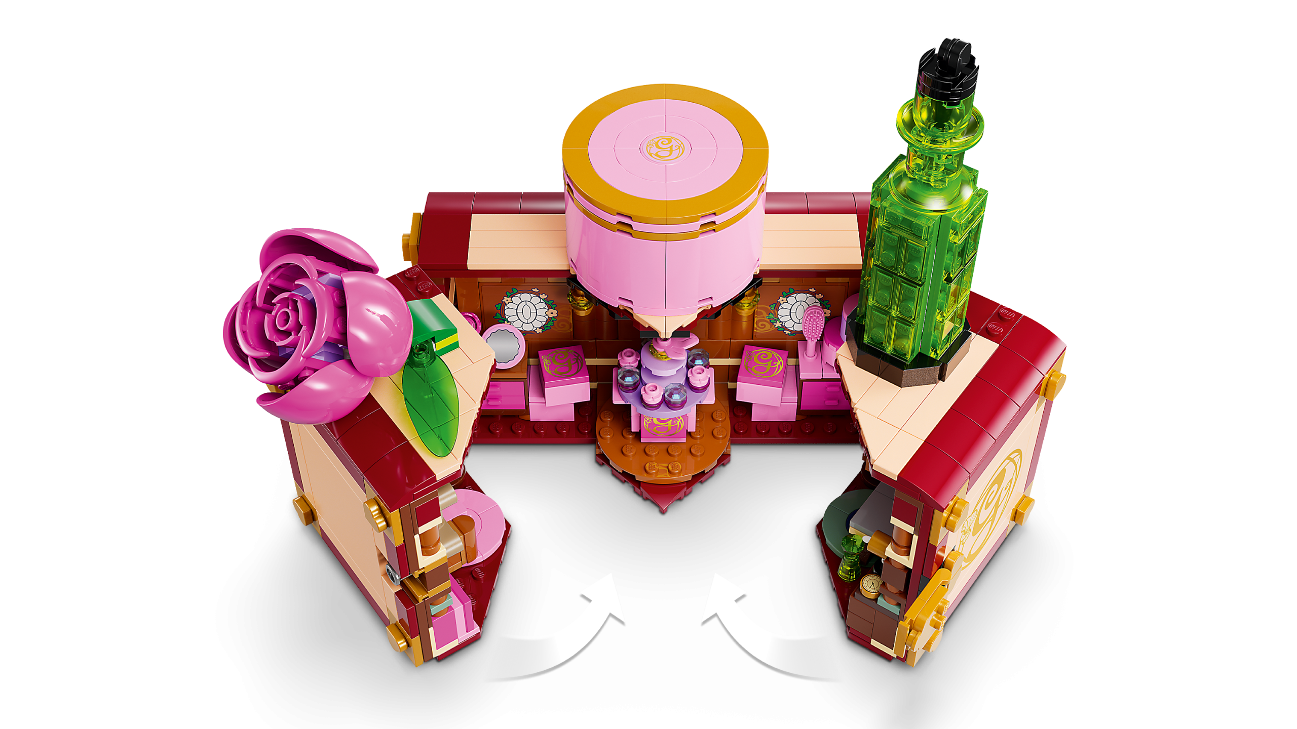 Kids scan the set’s hidden QR code to access unique LEGO® Wicked content and sing along to the “Popular” hit from the film. By placing the mini-dolls on the spinning stand, kids make the characters ‘dance’ along to the music! When the play is over, close the bedroom and transform it into Glinda’s trunk, which can be locked with a key!