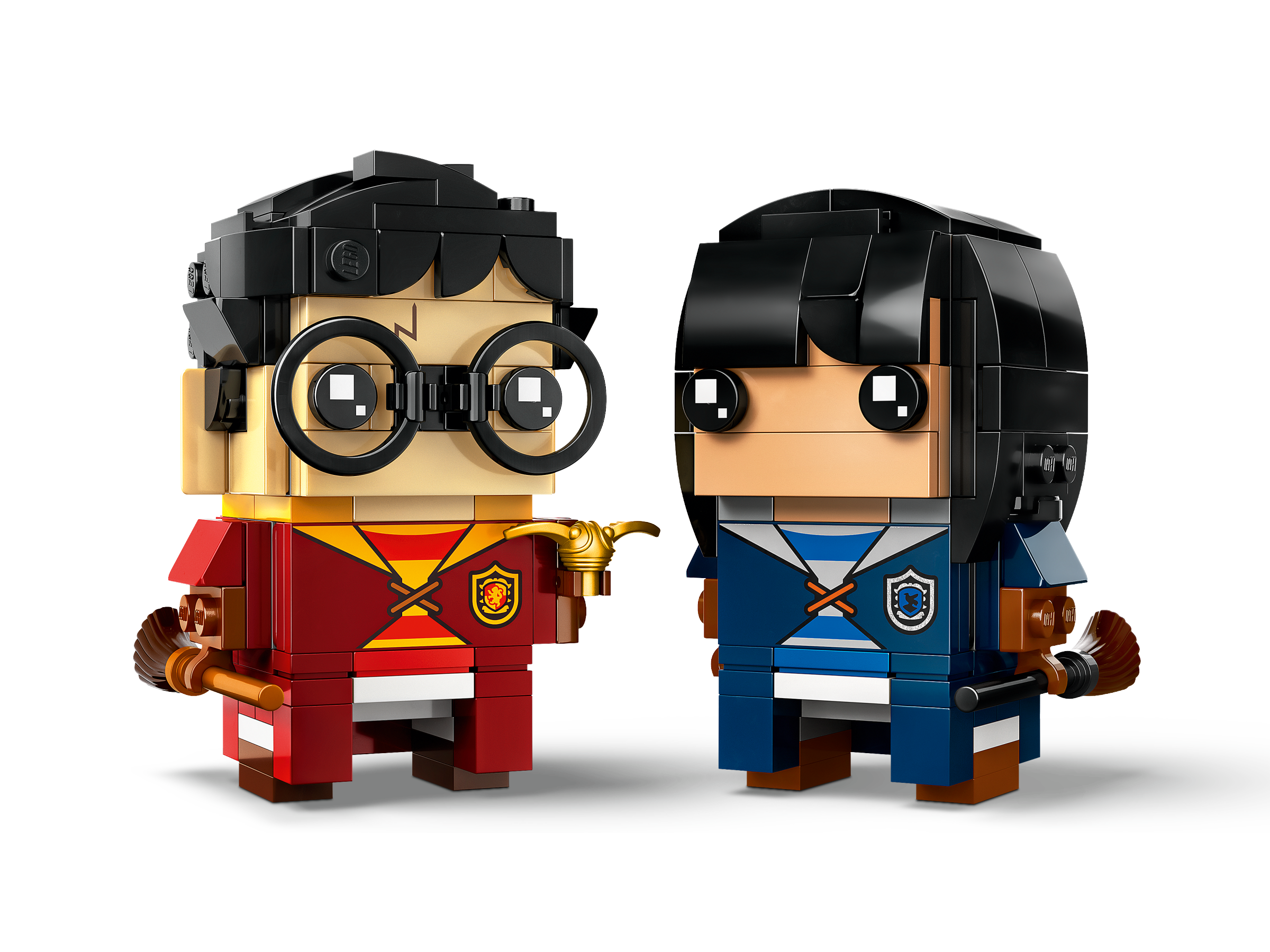Fans can relive epic Quidditch™ games as they build these LEGO® BrickHeadz™ Harry Potter™ & Cho Chang (40616) figures. With authentic details such as the Gryffindor™ and Ravenclaw™ house Quidditch uniforms, plus Golden Snitch™ and broomstick accessory elements, the buildable duo make a magical anytime LEGO gift for kids aged 10 and over and any Harry Potter collector.