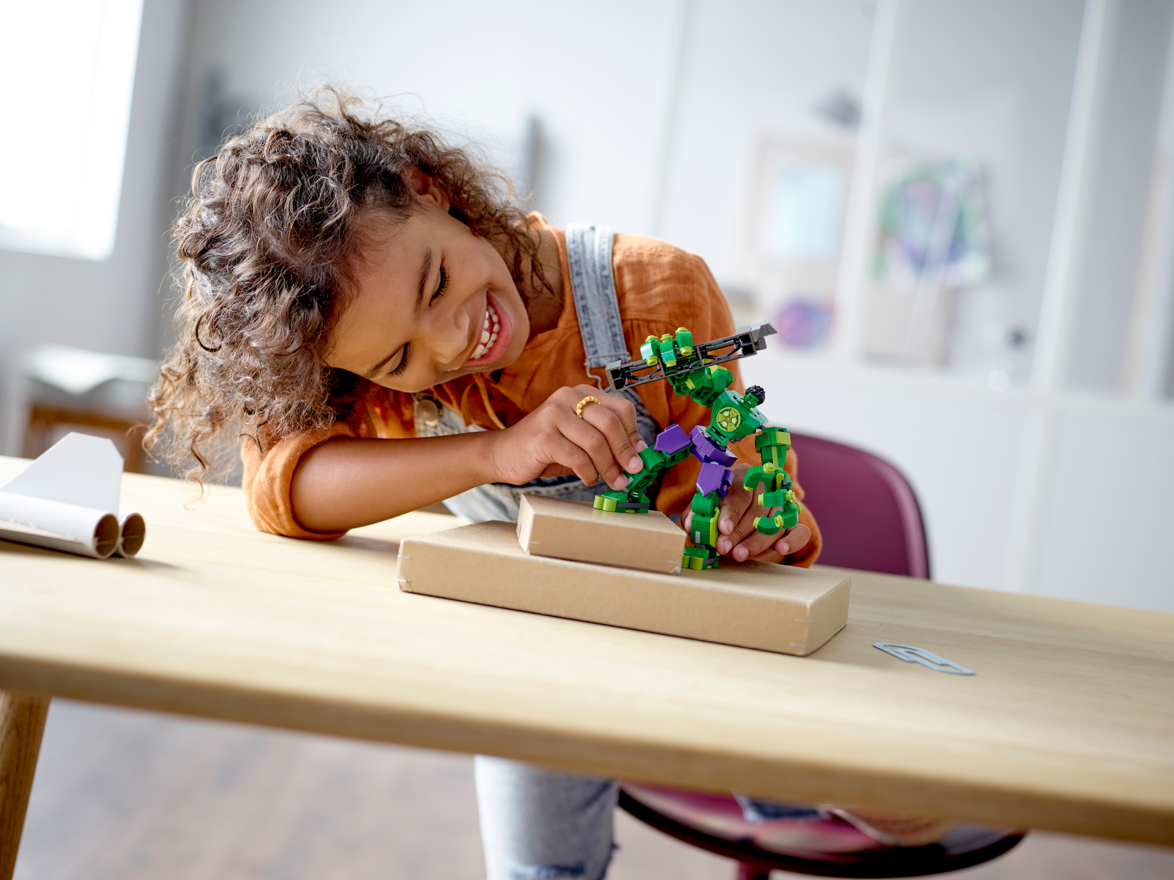 Kids place the Hulk LEGO minifigure into the opening cockpit of the mech, ready to take the giant fighting machine into its next mission. The jointed mech features movable arms, legs and fingers, allowing it to be positioned and posed for endless play-and-display possibilities. A ‘stone’ pillar helps inspire imaginative action. For added digital fun, the LEGO Builder app features intuitive zoom and rotate tools that let kids visualize their model as they build.