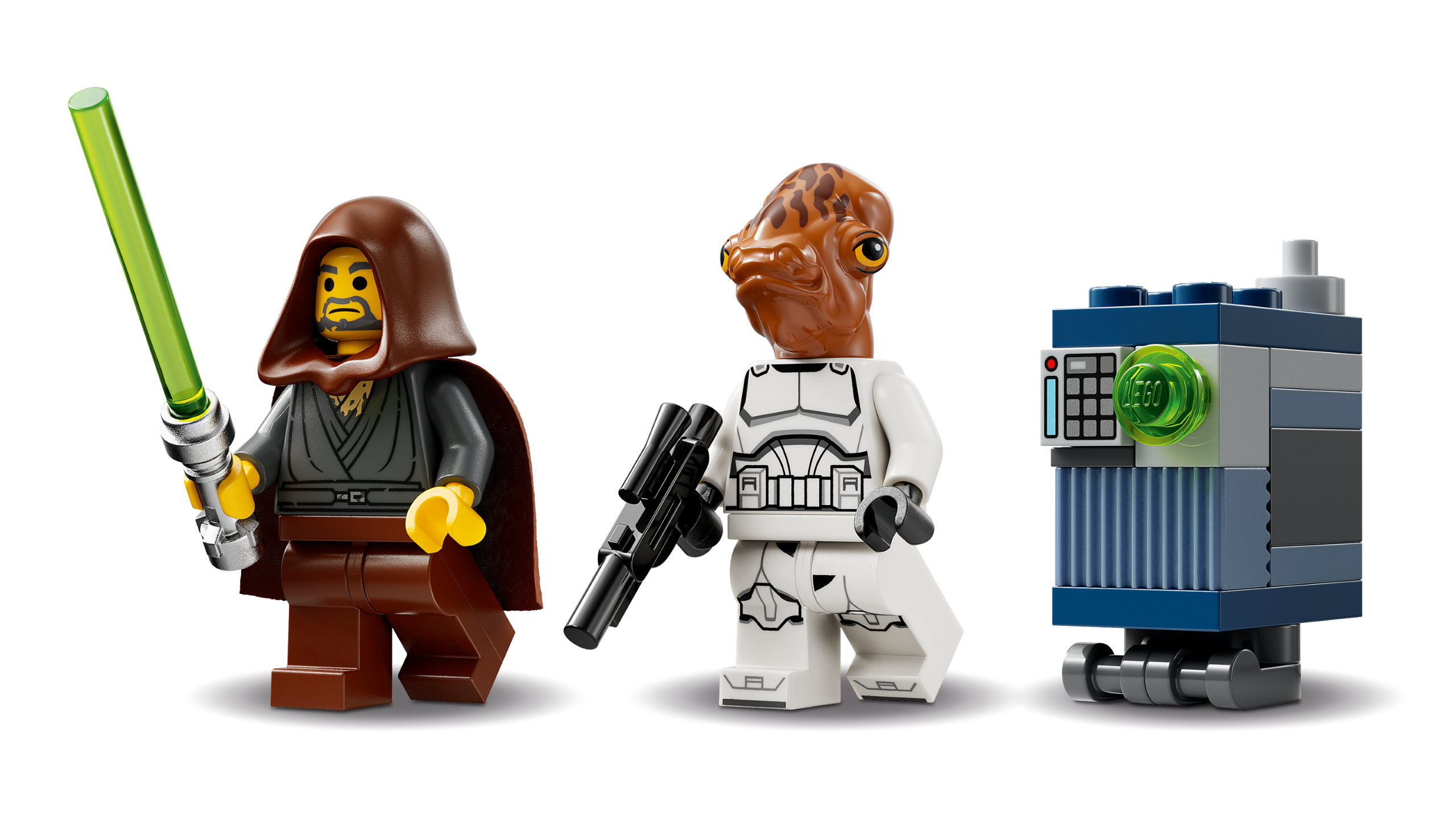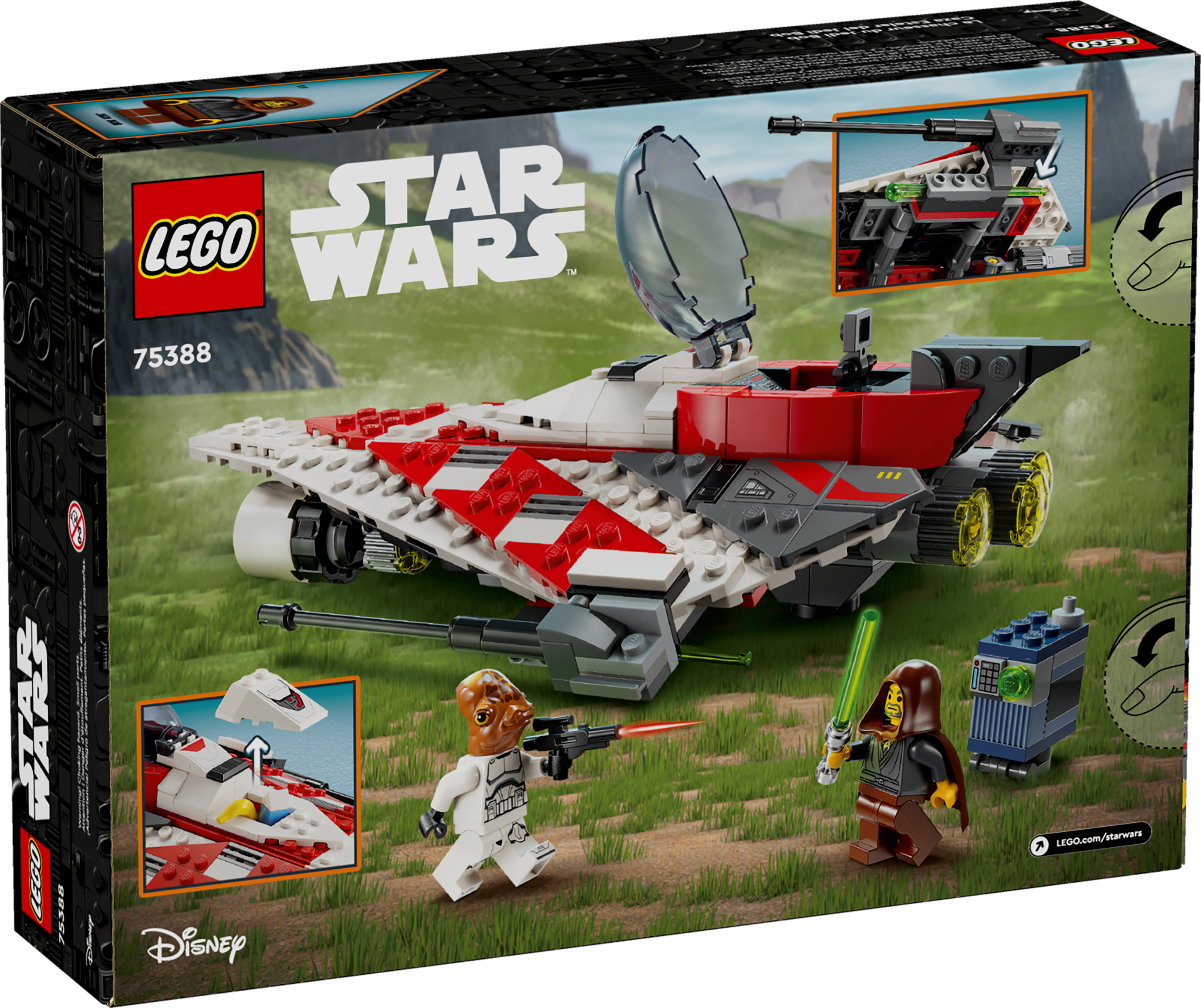 Introduce kids to the mystery character from a 2002 LEGO® Star Wars™ set who became a fan favourite with Jedi Bob’s Starfighter (75388). A cool birthday gift idea for boys, girls and any fan aged 8 and over, this LEGO Star Wars buildable toy set features a starfighter with an opening cockpit, 2 spring-loaded shooters and retractable landing gear. Play out exciting adventures with 2 LEGO Star Wars minifigures: Jedi Bob and an Ackbar Trooper, plus a Servo (SR-V0) LEGO droid figure, as seen in the LEGO Star Wars: Rebuild the Galaxy Disney special. Accessories such as Jedi Bob’s lightsaber, which clips to the base of the brick-built starship toy, and a blue milk carton and banana element, which can both be stowed in the storage compartment, add to the fun.