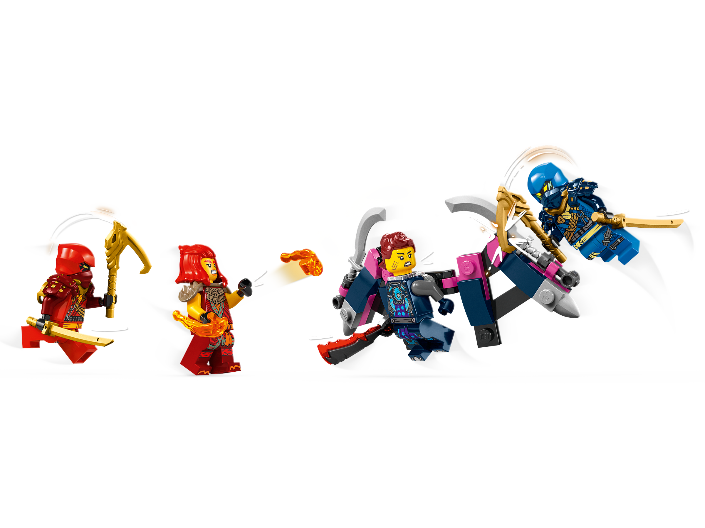 The rest of the LEGO® NINJAGO range of buildable ninja toys for kids includes dragons, vehicles and temples so fans can role-play adventures with their heroes (sets sold separately). Each action toy can be created with the LEGO Builder app, which guides you and your child on an easy and intuitive building adventure. Zoom in and rotate models in 3D, save sets and track your progress.