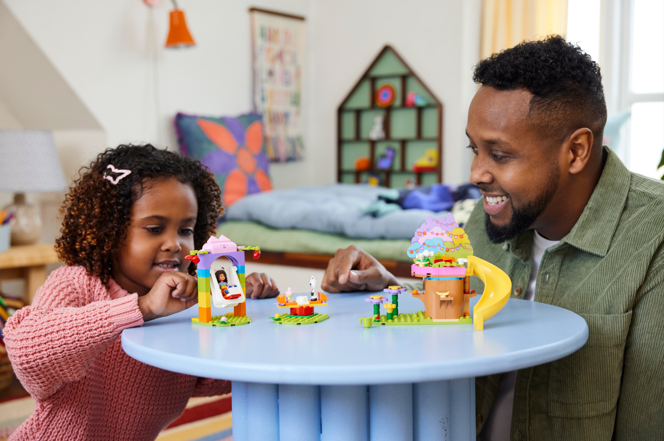 Gabby, Pandy Paws and Kitty Fairy from the popular TV series drink tea in the tree house, where Kitty Fairy has a bed and strawberry snacks. There are flowers for young gardeners to grow, plus a slide, swing and merry-go-round for the friends to play on. Accessories, including apples, a wateringcan, teapot, cups and butterflies, inspire kids to explore imaginative role play. There’s a colorful picture-story building guide, while the digital LEGO Builder app features intuitive zoom and rotate tools. As with all LEGO 4 sets, a large Starter Brick is included to ensure the building fun begins right away.