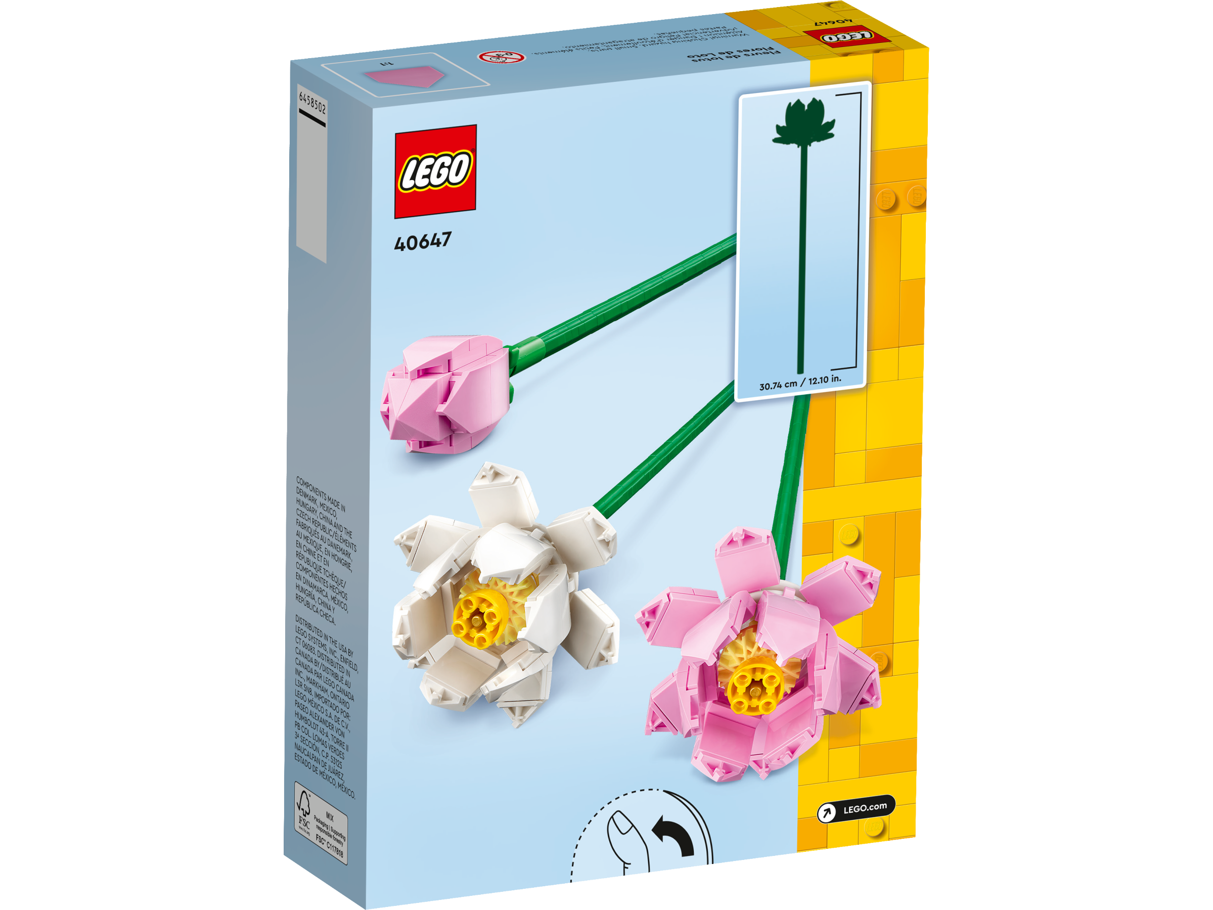 Recreate a wonder of nature with the LEGO® Lotus Flowers (40647) building set. This LEGO interpretation of the globally celebrated flower depicts 2 Lotus in full bloom, plus a flower head in bud, all in delicate shades of pink and white, with long green stems for vase display. This beautiful LEGO bouquet makes a great birthday, holiday or any-day gift idea and can be combined with other buildable LEGO flower sets (sold separately).
