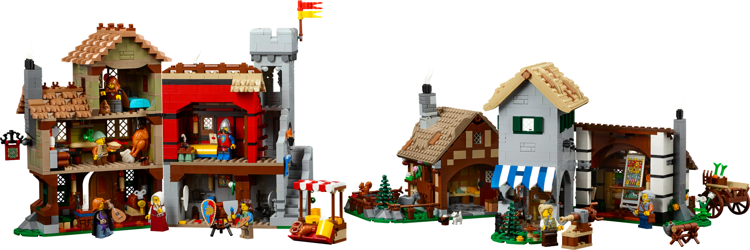 Enjoy an immersive solo or group building project as you recreate age-old objects and buildings with intricate interior and exterior detailing. Choose different configurations to create captivating displays and create fun storylines with a vintage lineup of minifigure characters, including a crook, carpenter, tax collector, tapestry weaver, shieldsmith and tower guard.