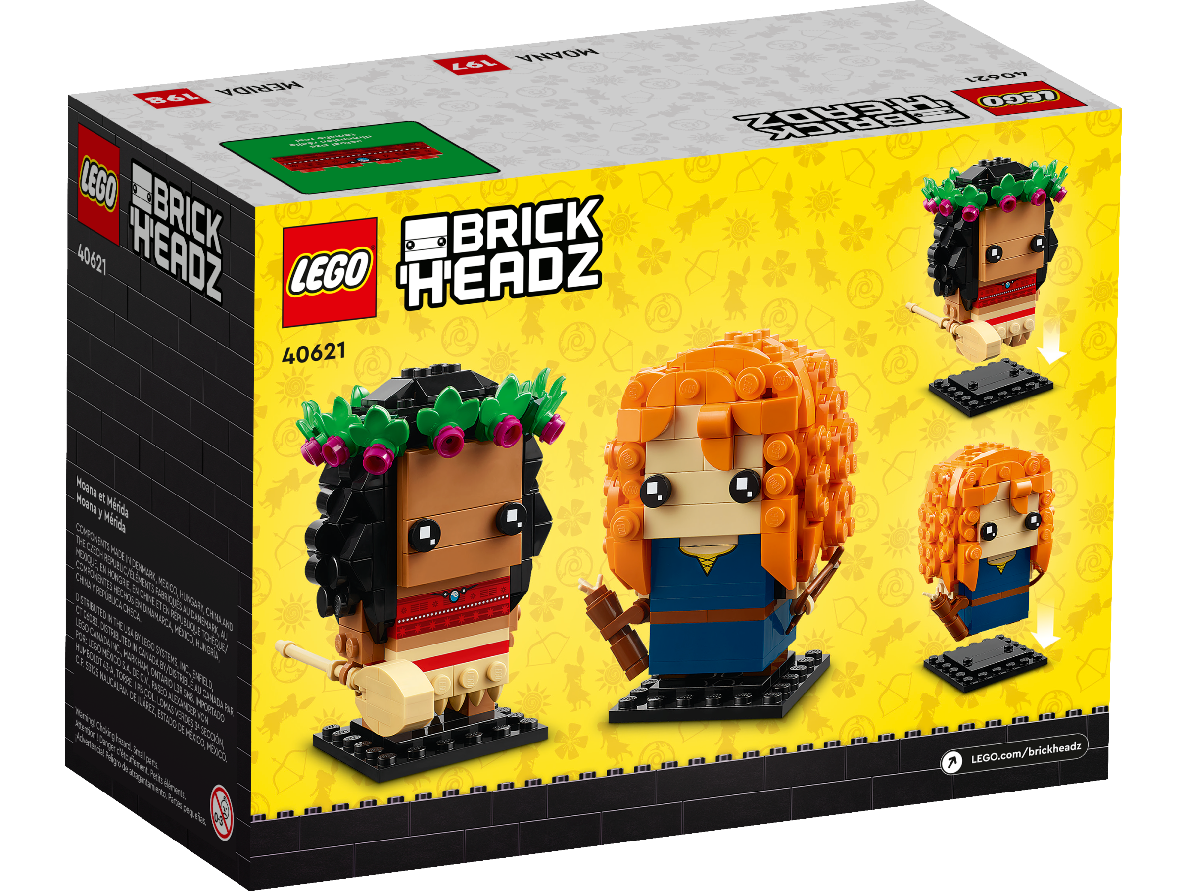 Inspire kids aged 10 and up with this BrickHeadz™ set featuring Disney’s Moana and Disney•Pixar’s Merida (40621) buildable LEGO® figures. Movie fans can build the detailed models, then set them on individual baseplates and display them anywhere at home or in the office. The set consists of 410 pieces to create the 2 LEGO figures. Moana’s skirt is decorated like in the movie. The set makes a fun birthday or holiday gift and collectible display piece for kids or fans of the movies.