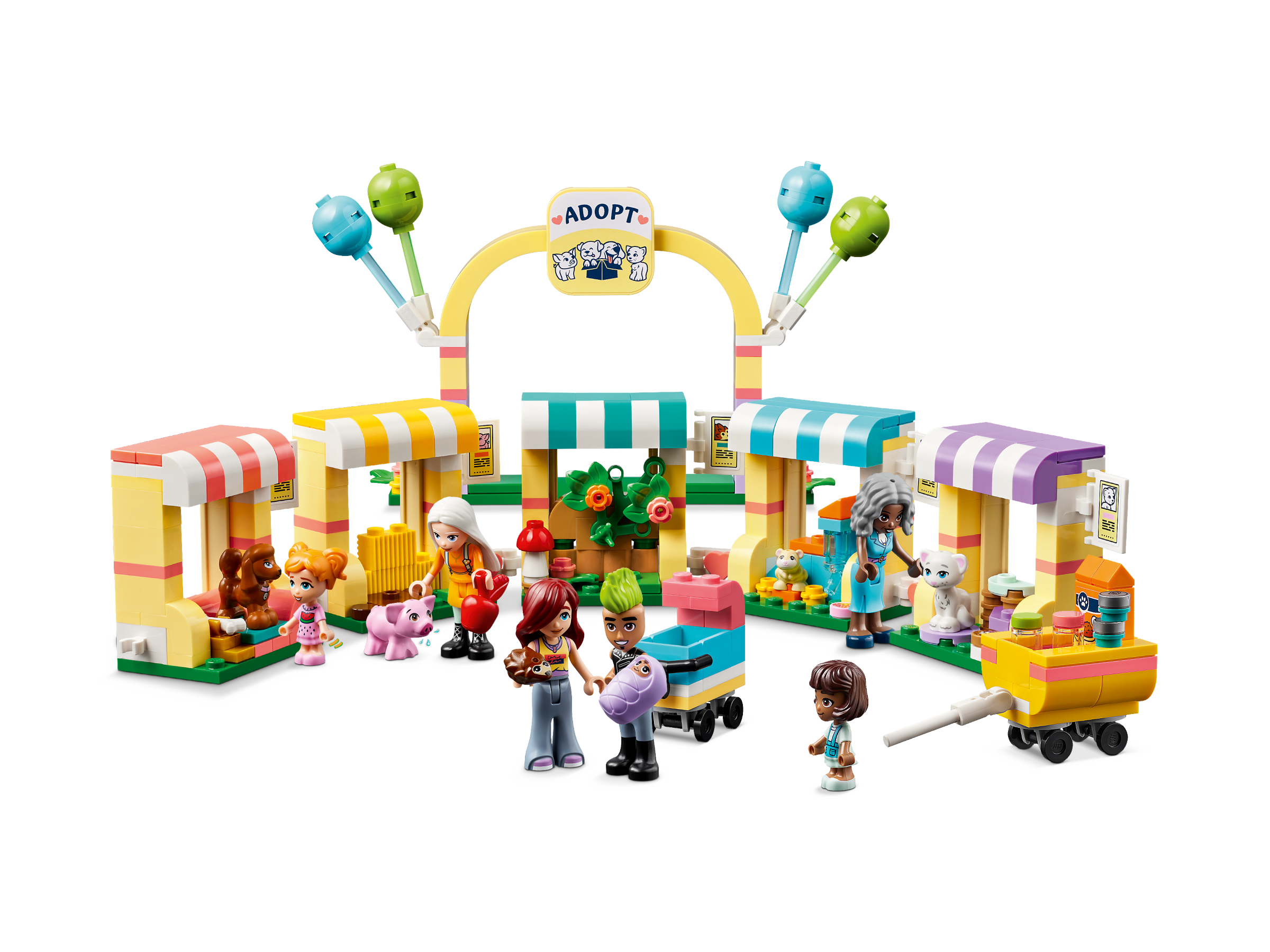Kids who love pet toys can enjoy hours of animal care role play with the LEGO® Friends Pet Adoption Day (42615) toy playset for girls, boys and kids aged 6 . The animal toy set includes 4 mini-dolls, 2 micro-dolls, a baby figure, 5 pet figures and lots of accessories.