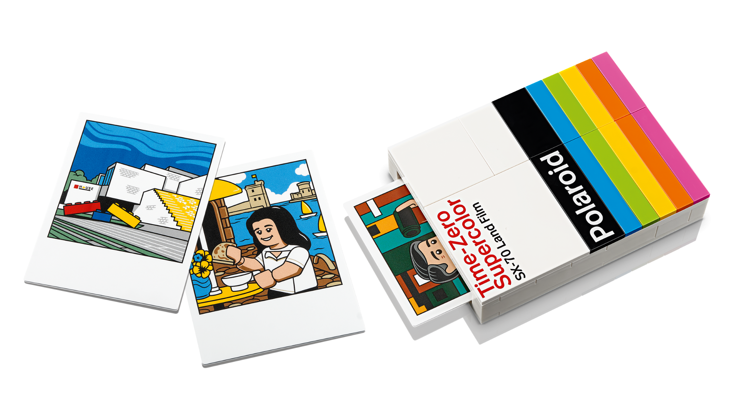 Enjoy quality time capturing iconic details such as the viewfinder, Color Spectrum and exposure compensation dial, and add stickers with authentic graphics. Build a Polaroid Time-Zero Supercolor SX-70 Land Film pack containing 3 illustrated ‘photos’, including one of Polaroid inventor Edwin H. Land. Choose a photo, load it into the camera, press the red shutter button and the photo is ejected, just like the real thing.