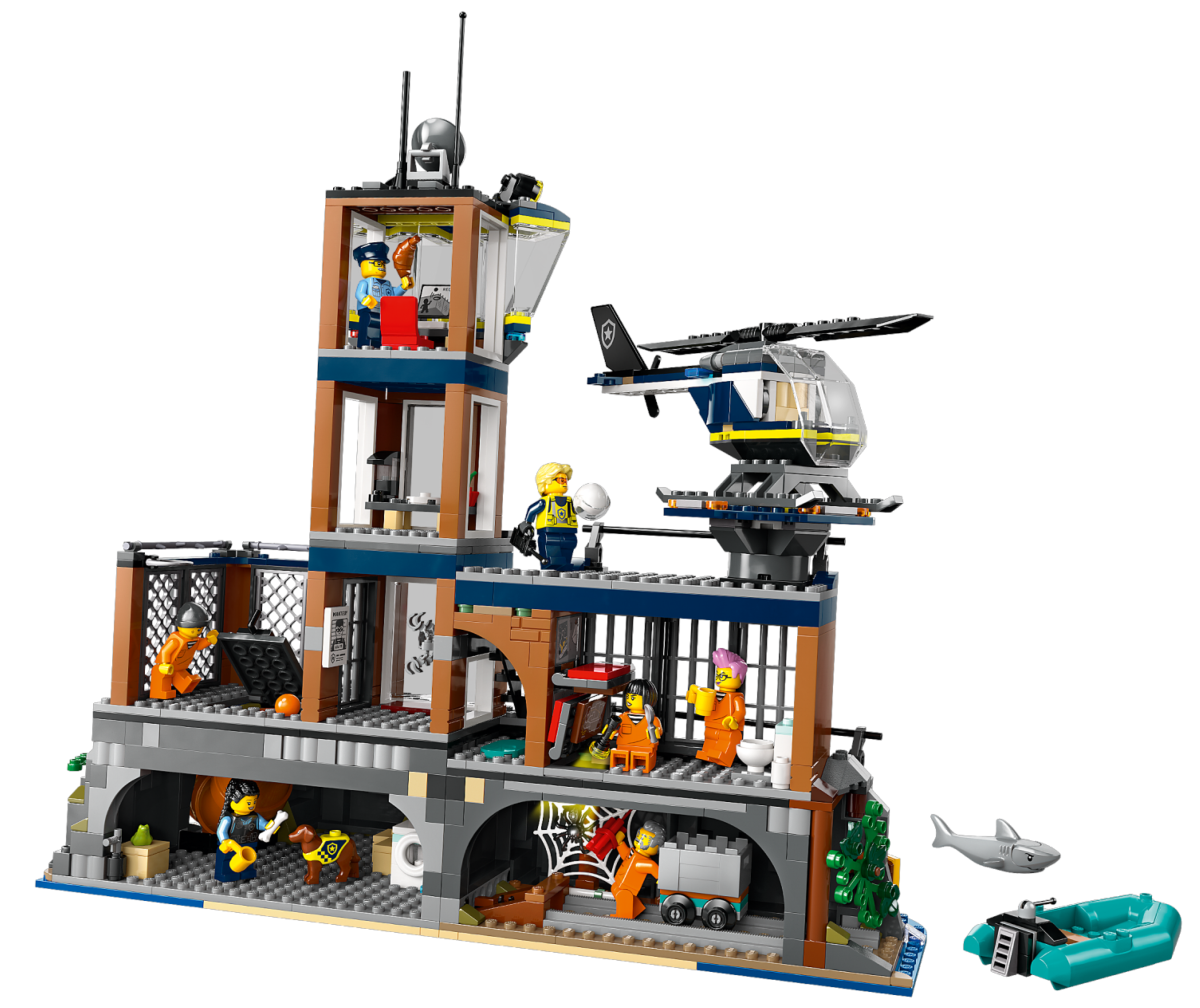 The LEGO® City Police Prison Island (60419) is home to some of the city’s most notorious crooks, but they have other plans! Action-packed adventures await with this awesome toy playset, featuring a cliffside prison bursting with features and functions. It also includes a helicopter, police boat, dinghy, 3 officer and 4 prisoner minifigures, plus police dog and shark figures.