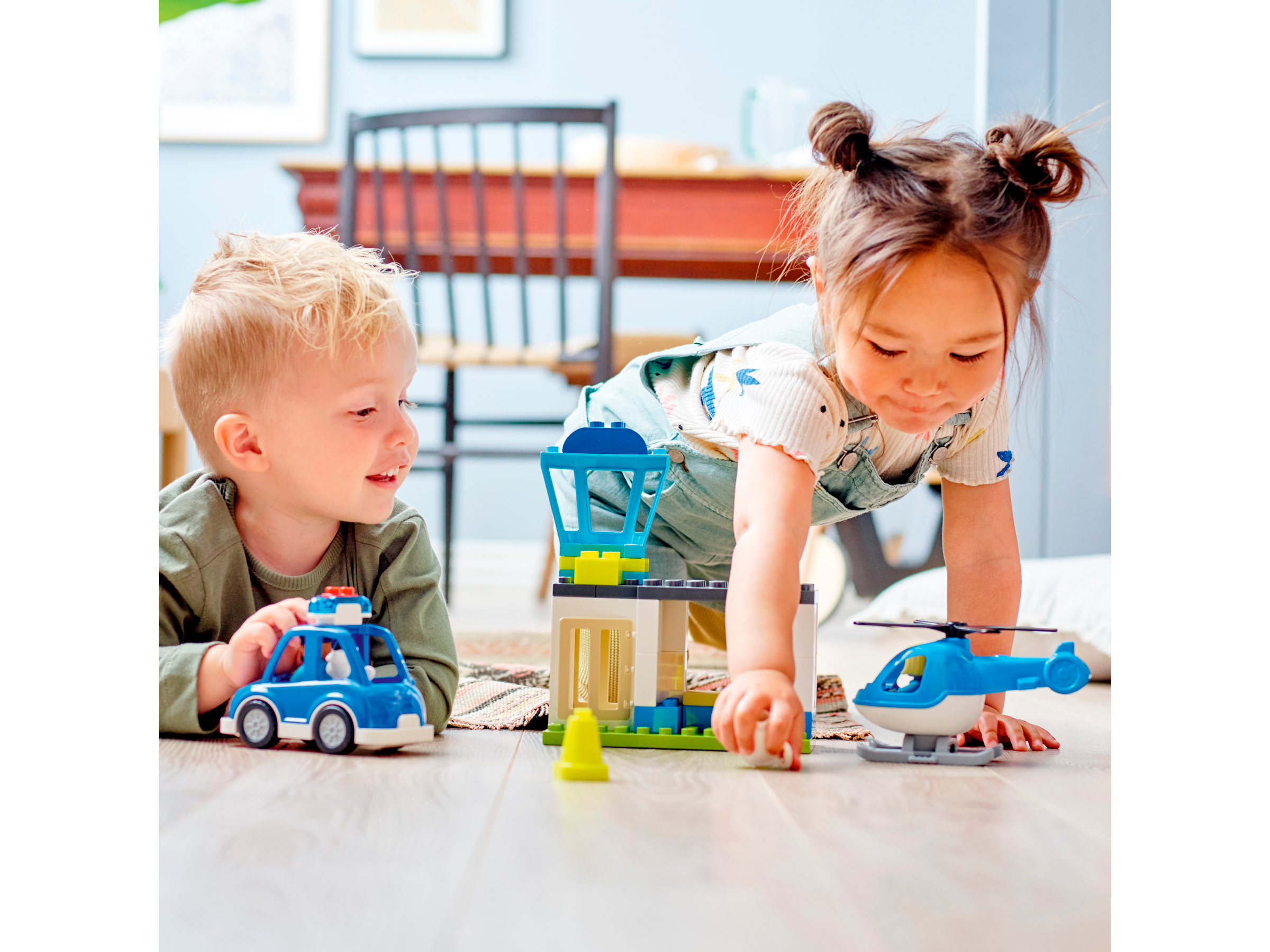 LEGO® DUPLO® Rescue Police Station & Helicopter (10959) is a toddler-friendly police playset featuring characters and vehicles to inspire kids aged 2 .