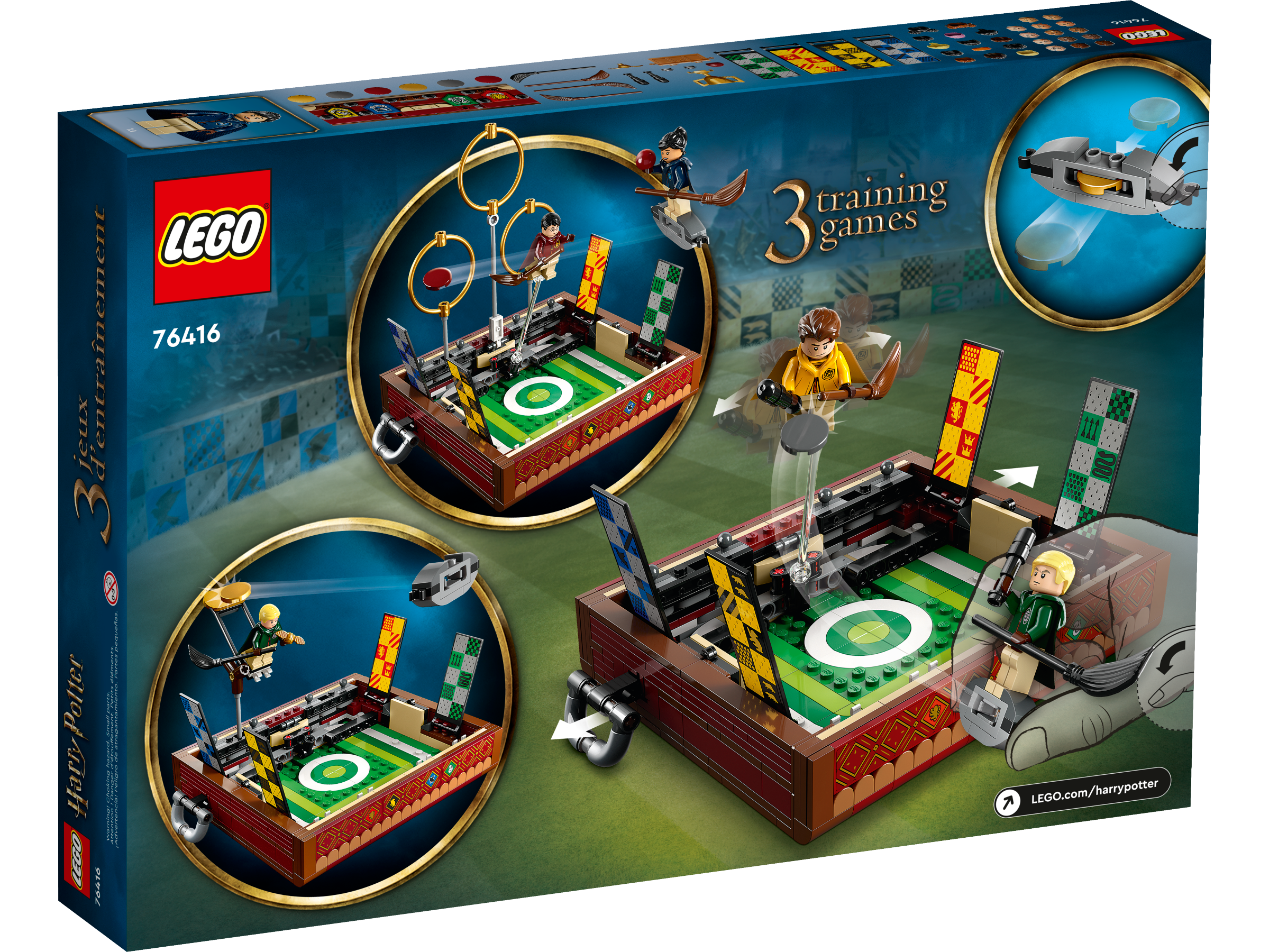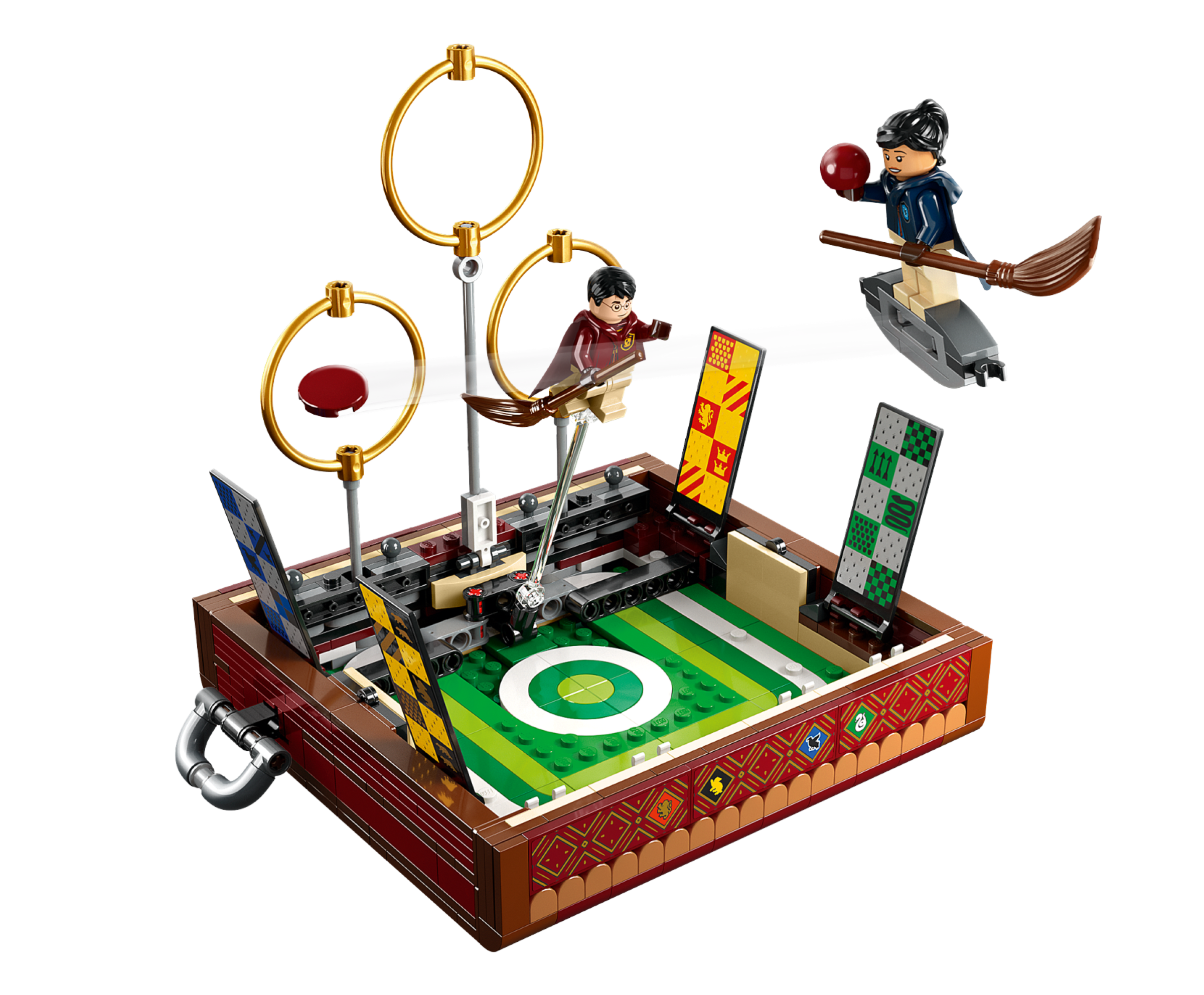Kid will love to build this magical LEGO® Harry Potter™ Quidditch™ Trunk toy (76416), which unlocks to reveal a Quidditch playing field, Hogwarts™ house banners and everything needed to play solo or 2-player Quidditch games.