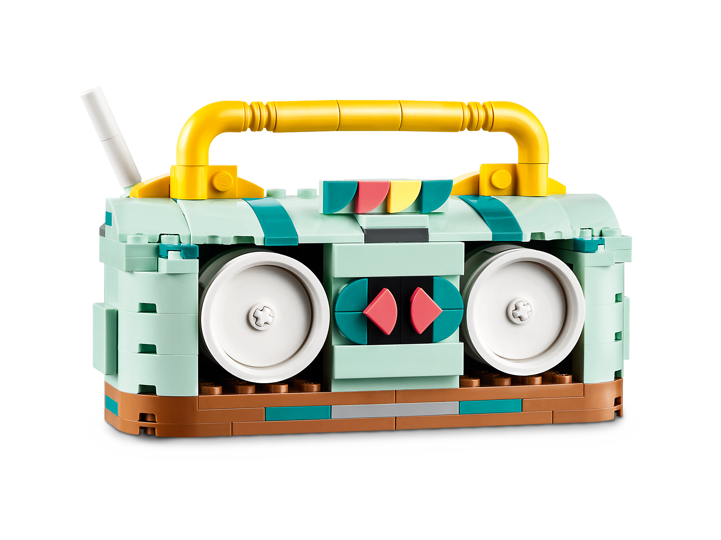This LEGO Creator 3in1 set gives kids 3 different build-and-play experiences with the same set of bricks. They can build a roller skate toy and rebuild it into a colourful retro mini skateboard with 4 moving wheels or a retro boom box radio with a small antenna. All 3 models make eye-catching display items for kids after their playtime adventures.