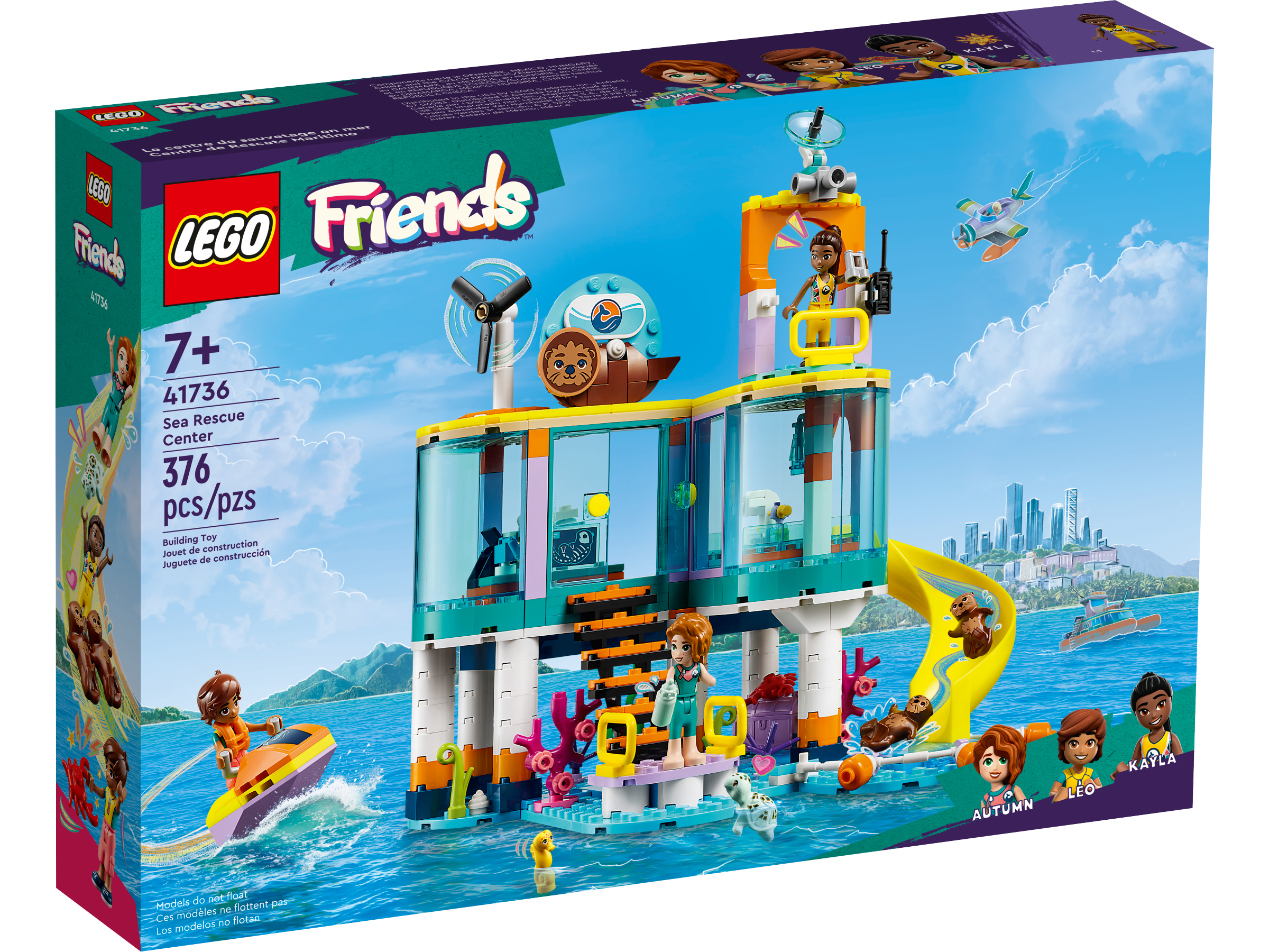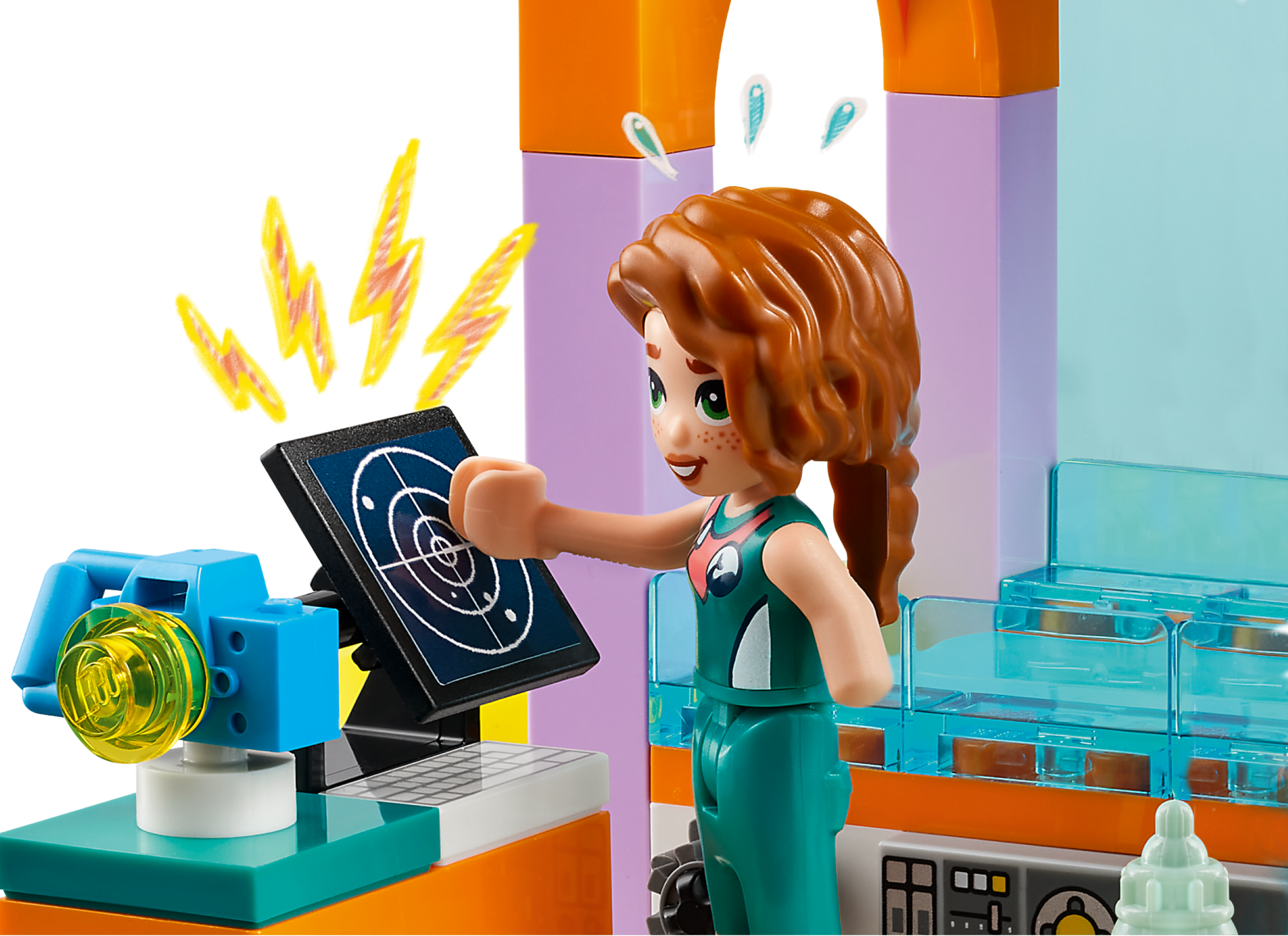Kids ages 7 and up who love animals can act out ocean stories with this LEGO® Friends Sea Rescue Center (41736) toy. The set comes with 3 mini-dolls and 2 sea otters, a seahorse and a sea turtle, plus lots of accessories to inspire pretend play. Kids can use the water scooter to pull up to the dock, then head inside to clean, x-ray and feed the otters. Then they can help the otters slide into the rehabilitation area. When the otters are well again, they can swim back into the ocean. Accessoriesinclude a life vest, feeding bottle, walkie-talkie, treasure chest, camera, computer, microscope, syringe and an X-ray machine.