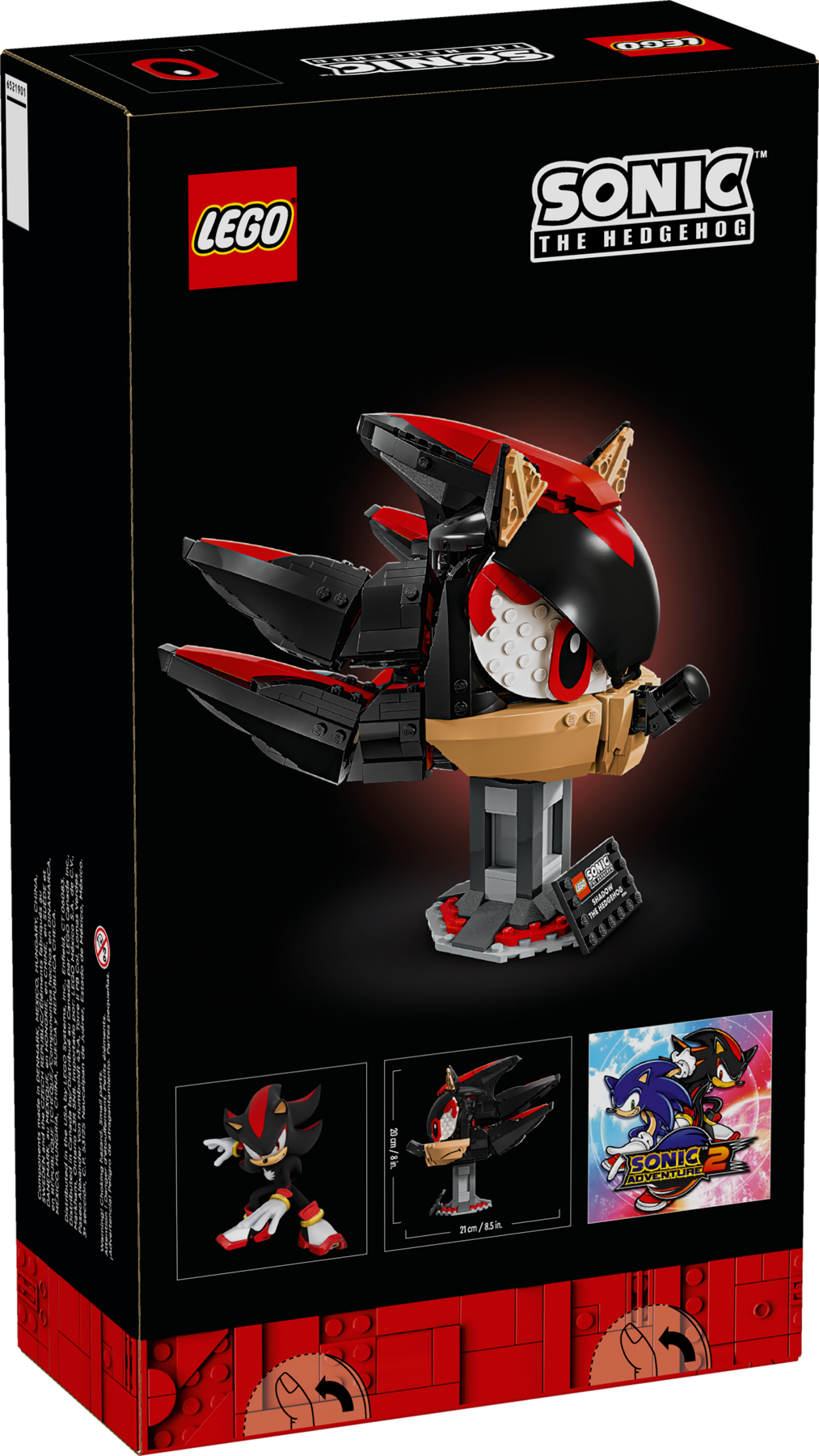 Adult gaming enthusiasts can share their passion for the Ultimate Lifeform with this collectible Shadow the Hedgehog (77000) buildable LEGO® display gift model. This authentically detailed model kit captures the bold coloring and fierce expressionof Shadow, an iconic character from the Sonic the Hedgehog™ video game franchise. The buildable display set features Shadow’s head and a nameplate, plus Easter eggs hidden in both the head and the sturdy stand.
