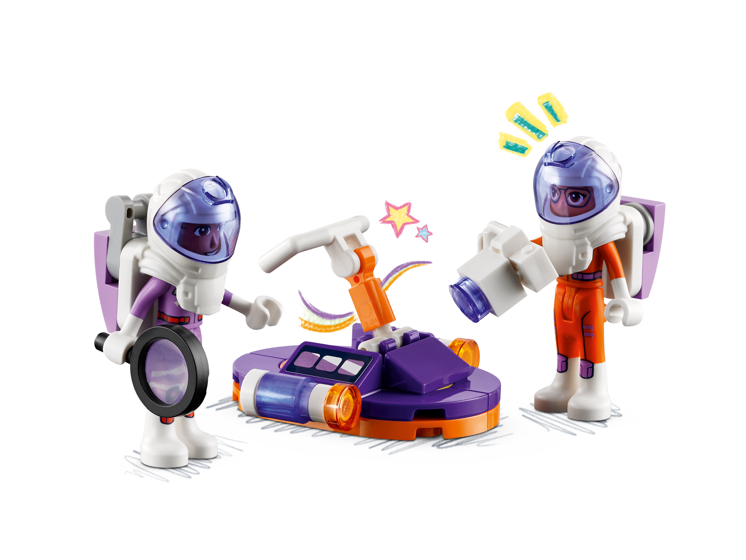 This kids’ vehicle toy lets girls and boys aged 8 create their own extraterrestrial stories for the 2 friends and their astronaut dog. The LEGO® Friends Space Research Rover (42602) toy tells the story of Olivia and William, who are exploring an uncharted planet. They’re searching for signs of alien life and the rover toy with wheels has everything they need, including a toy science lab and hover scooter.