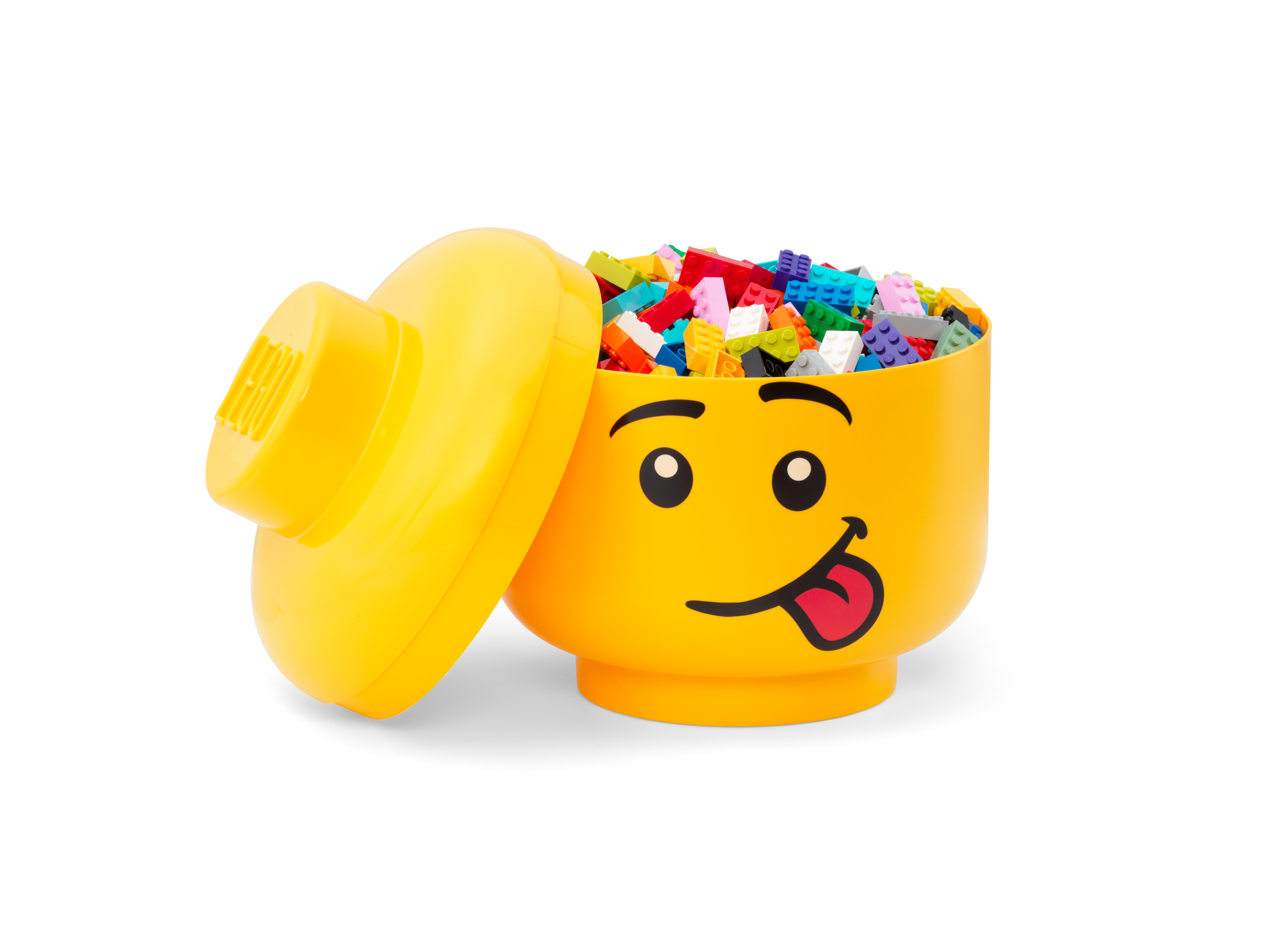 This bright yellow LEGO® Storage Head provides the perfect way for a LEGO fan to stow bricks, office utensils and any other small items. Made from durable plastic, this upscaled version of the familiar LEGO minifigure head, with a funny, tongue-out facial expression and a lift-off lid, provides a practical solution to everyday storage needs. A great way to add a cheeky touch to any room’s décor, this fun and colorful storage combines easily and effectively with other LEGO furnishings.