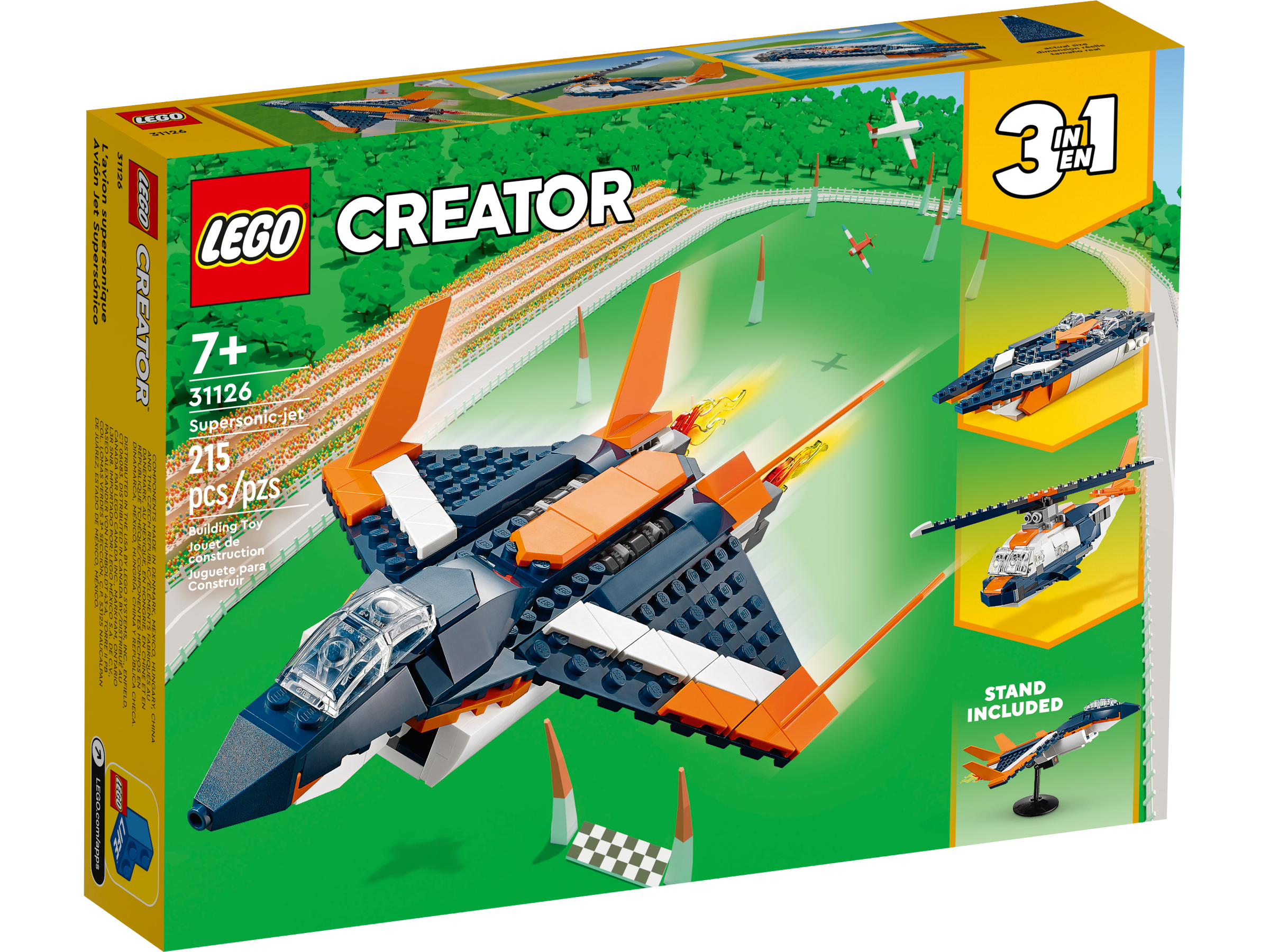 Kids aged 7 and up can enjoy thrilling playtime action high in the sky or on the water with this fantastic LEGO® Creator 3in1 Supersonic-jet (31126) building toy.