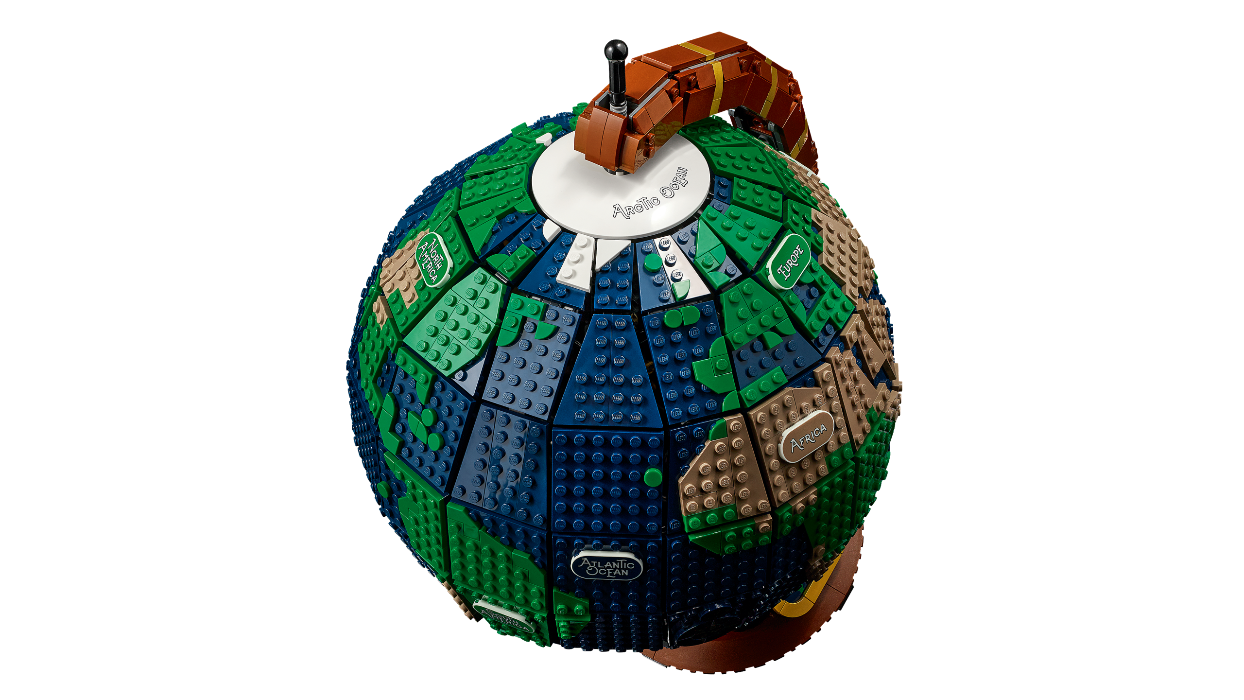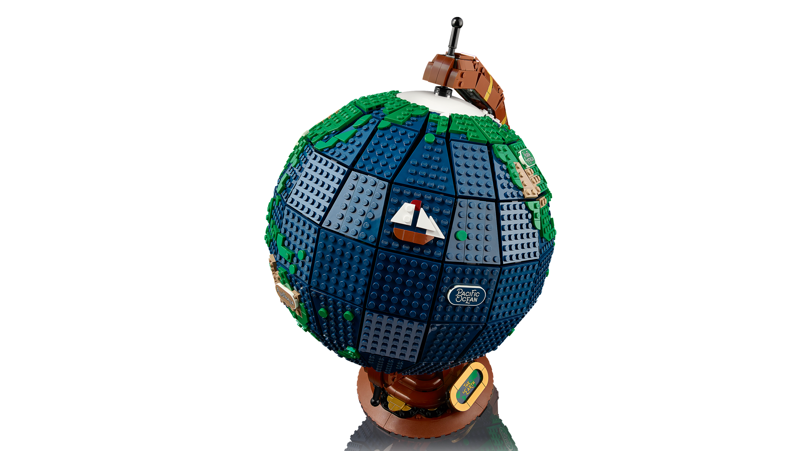 Where do you want to go today? Dream of your next travel destination as you build The Globe (21332). Created by a fan-designer and brought to the world by the LEGO® Ideas team, this display model recreates the spinning movement of a vintage Earth globe with the help of LEGO Technic™ elements and features glow-in-the-dark tiles decorated with the names of continents and oceans. There are buildable ship and compass icons, plus ‘The Earth’ nameplate to complete a charming centrepiece to enhance the decor of any home or office.