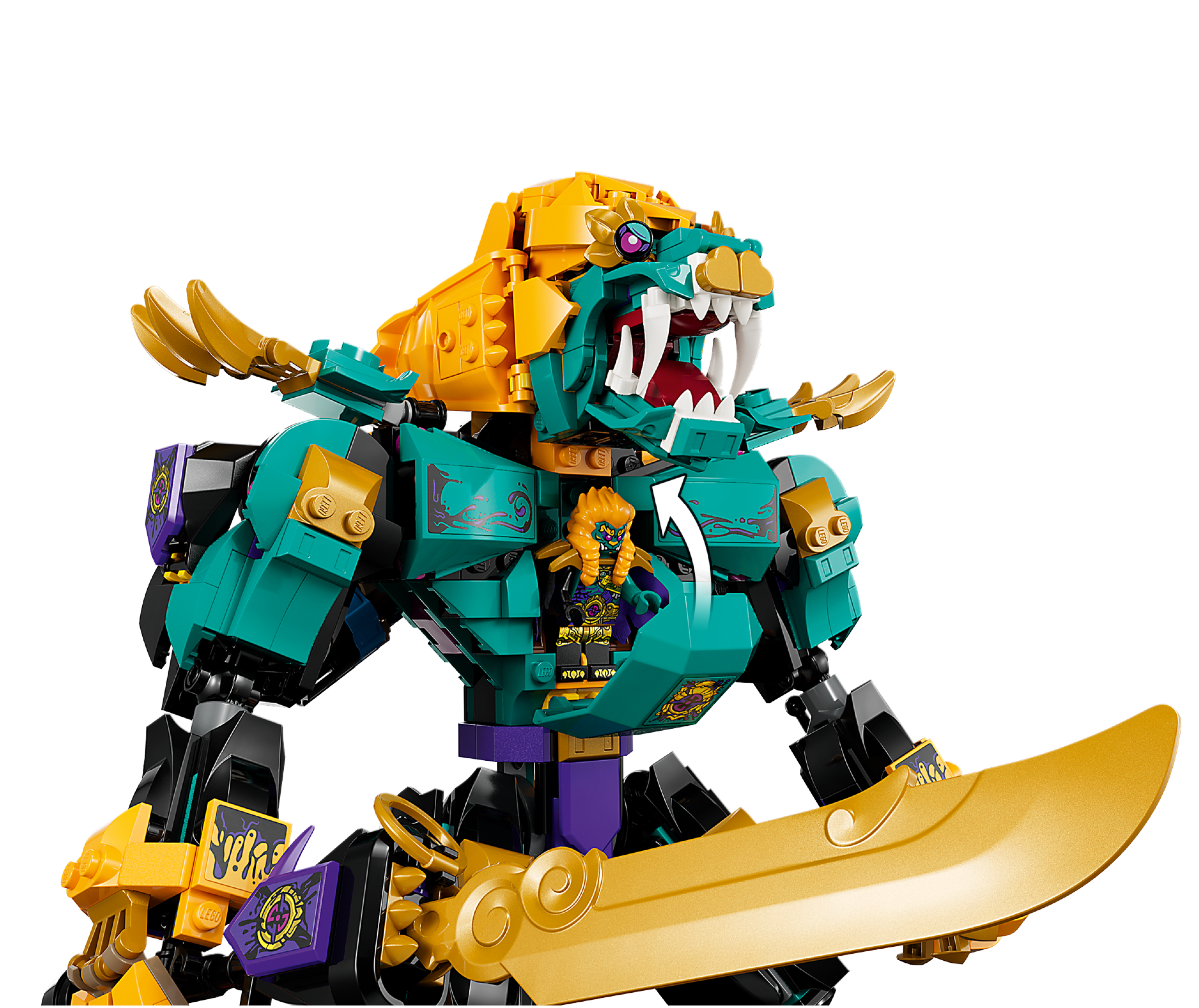 Appeal to kids aged 9 and up with a villain from the classic Chinese legend and season 4 of the LEGO® Monkie Kid™ TV show in this LEGO Monkie Kid The Mighty Azure Lion (80048) buildable action set. It has an articulated mech figure, a sword and scroll with a 6-stud shooter and 5 minifigures: Monkie Kid (at the start of his transformation), Monkey King, Pigsy Power-up, Azure Lion and an Ink Demon. Accessories include the Golden Staff, ancestral rake, Azure Lion’s sword/pen and more.