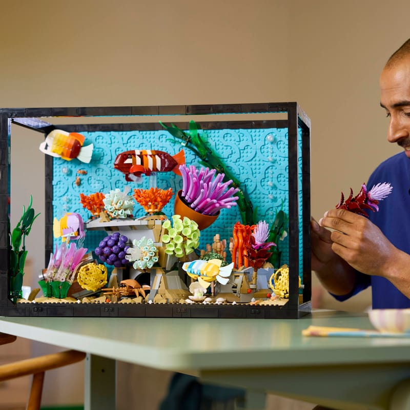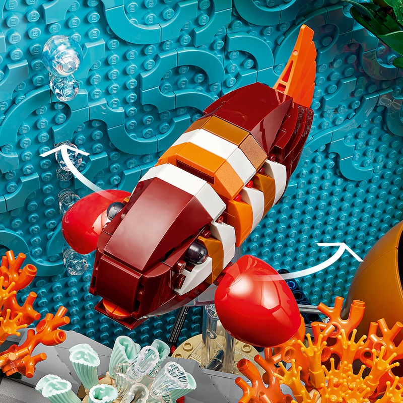 Cultivate a thriving aquarium full of boldly beautiful tropical fish, vibrant water plants and even a few surprises. Breathe liveliness into the set with hidden levers to move fish and plants like real sea creatures. A unique display model of a brick-built underwater paradise for your home or office without the upkeep.