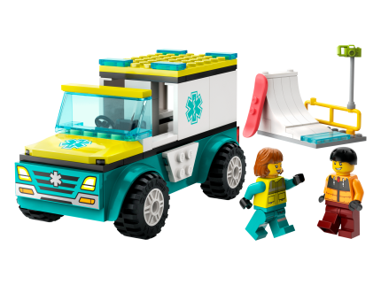 Join your little builder for quality playtime with the LEGO® City Emergency Ambulance and Snowboarder (60403) playset, featuring a toy