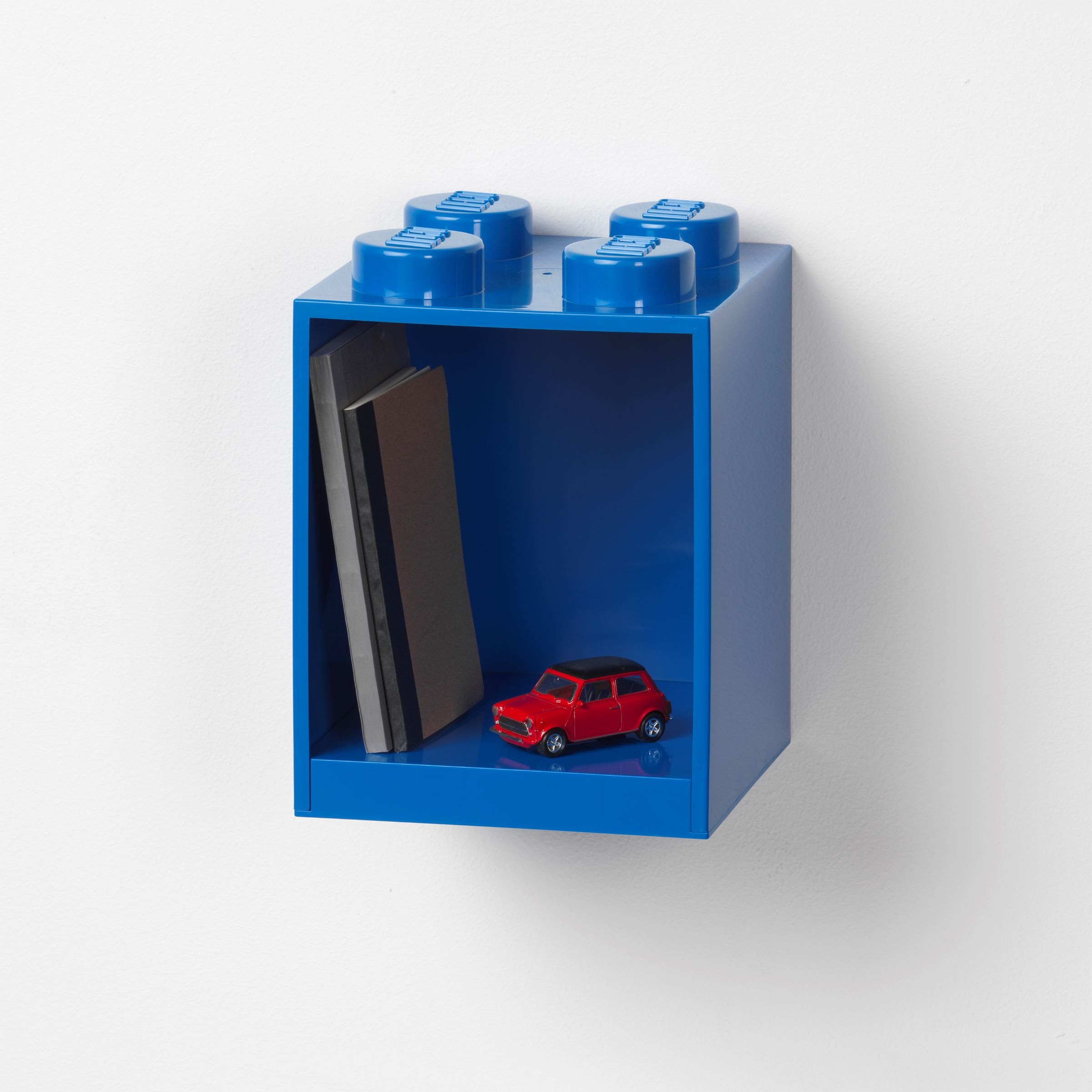 Keep kids’ rooms neat and organized with this LEGO® 4-Stud Brick Shelf. Designed to look like a LEGO brick, it offers a fun and practical way for LEGO builders to safely store their books, toys, souvenirs and LEGO models. Mount the shelf on a wall, place it on a desk or combine it with other LEGO shelves and drawers (available in assorted colors – sold separately) for more colorful brick-style storage.