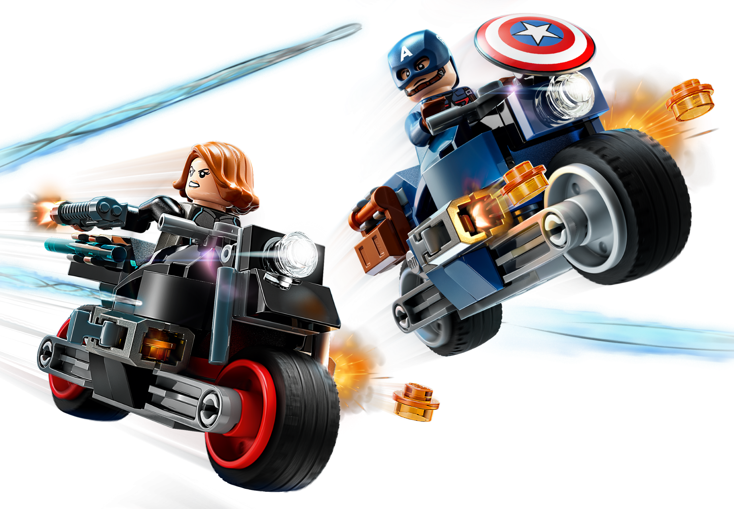 The Captain America and Black Widow minifigures ride motorcycles first seen in the memorable 2015 Marvel Studios’ Avengers: Age of Ultron film. Both motorcycles incorporate side-shooters and holders for Black Widow’s baton and Captain America’s shield. The minifigures are easily removed from the motorcycles to expand the play possibilities even further. For added digital fun, builders can zoom in, rotate sets in 3D and track their progress using the fun, intuitive LEGO Builder app.
