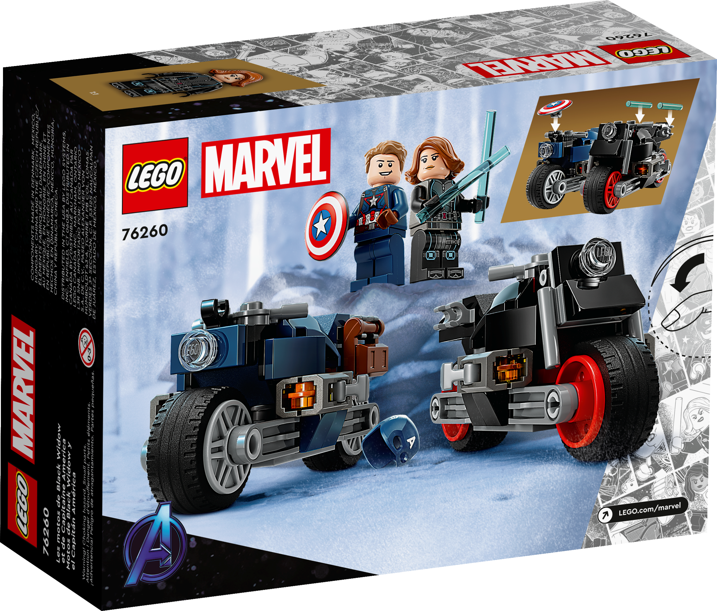 Bring iconic film action to life with LEGO® Marvel Black Widow & Captain America Motorcycles (76260). Based on a scene from Marvel Studios’ Avengers: Age of Ultron, these motorcycling Super Heroes will take kids aged 6 down an endless road of imaginative adventures.