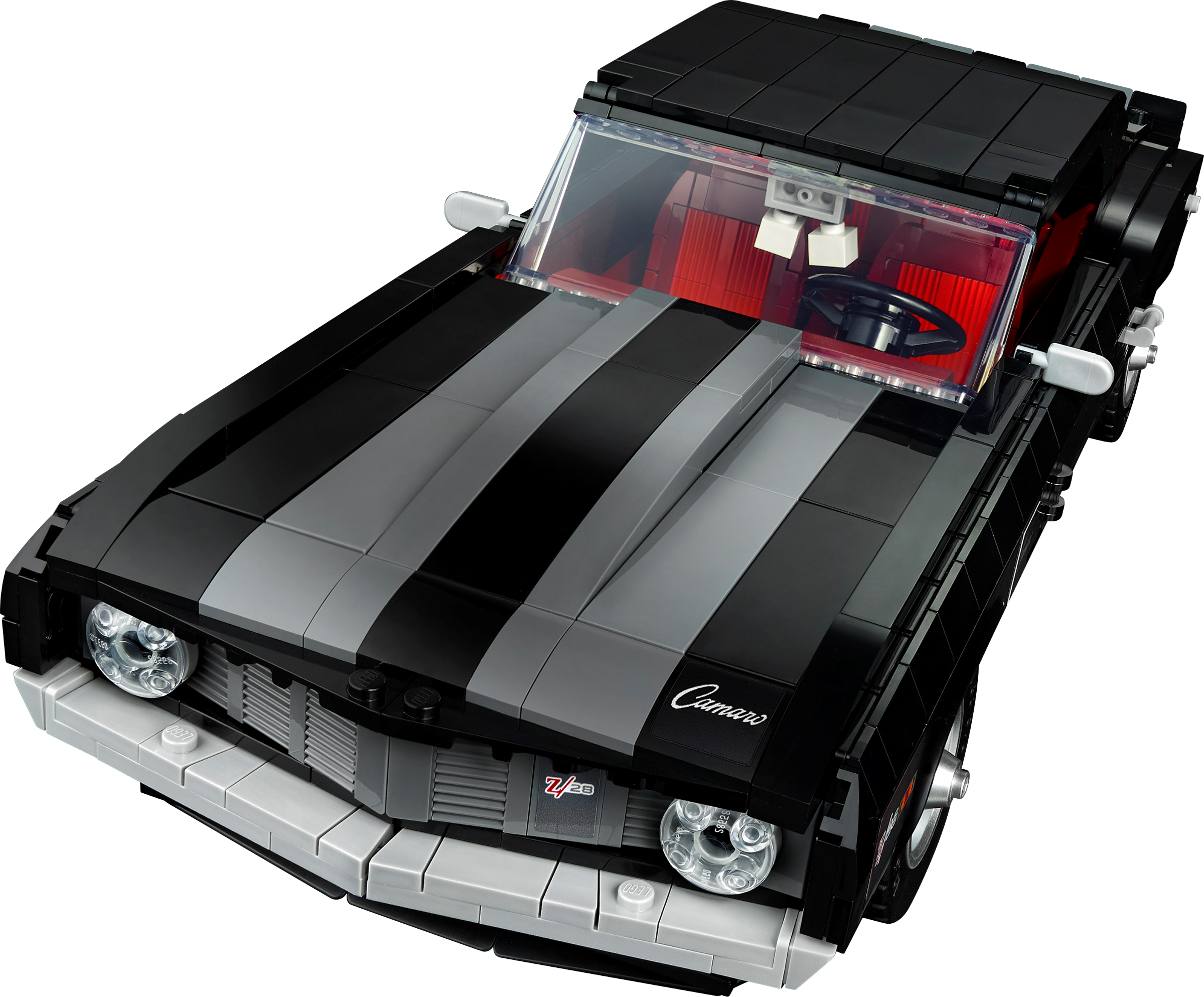 Just like the classic 1969 Chevrolet Camaro Z28, this highly accurate collectible LEGO® model car comes with a host of options so you can personalise your car, your way. With the roof or convertible? Classic or hideaway front headlights? White, grey or red racing stripes? The choice is yours. But this car’s impressive looks are just the start. Authentic features include a detailed V8 engine, working steering and opening doors, plus opening bonnet and boot.