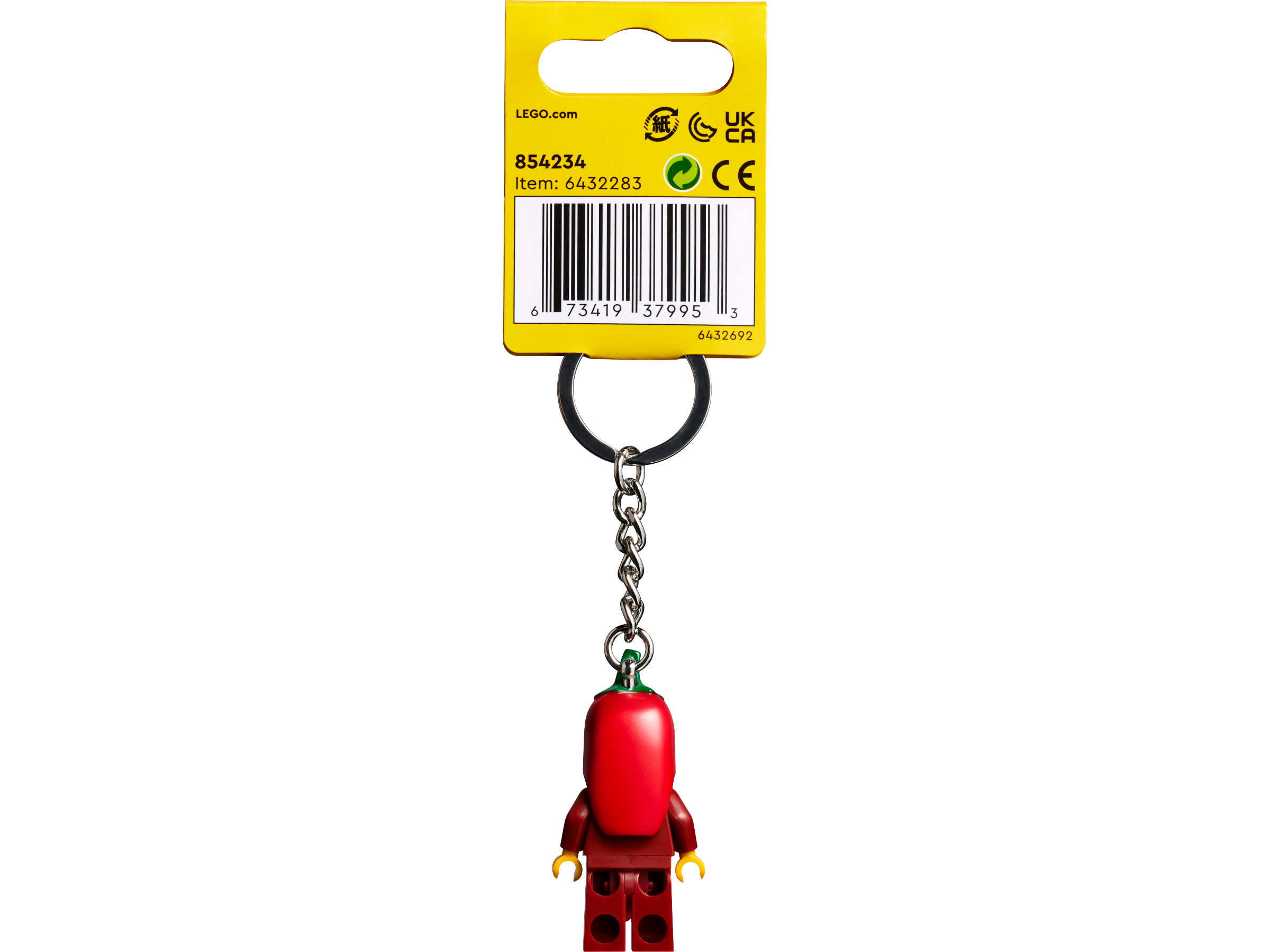 The LEGO® Chili Girl Keyring (854234) combines a practical product with a fun chili-pepper minifigure! Whether attached to keys, bags, backpacks or anything else, the strong metal ring and chain ensure the fiery figure remains securely attached. This fun keyring is a practical gift idea for chili lovers aged 10 and up.