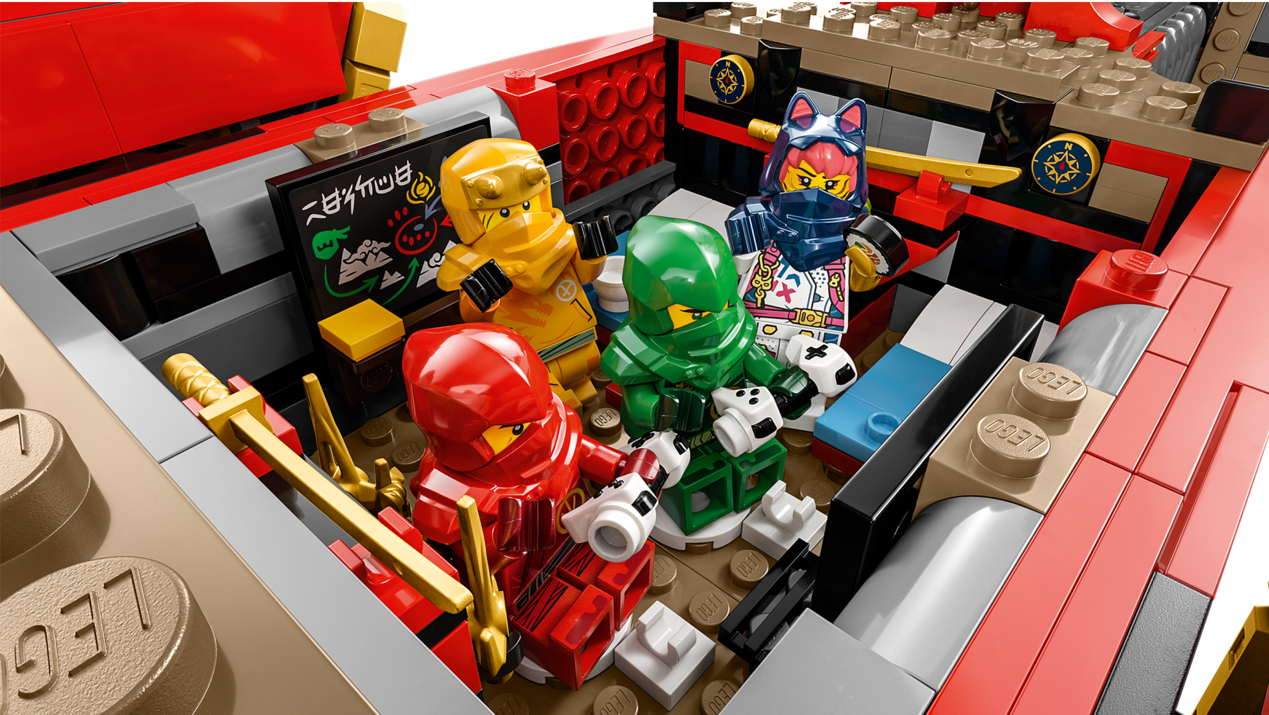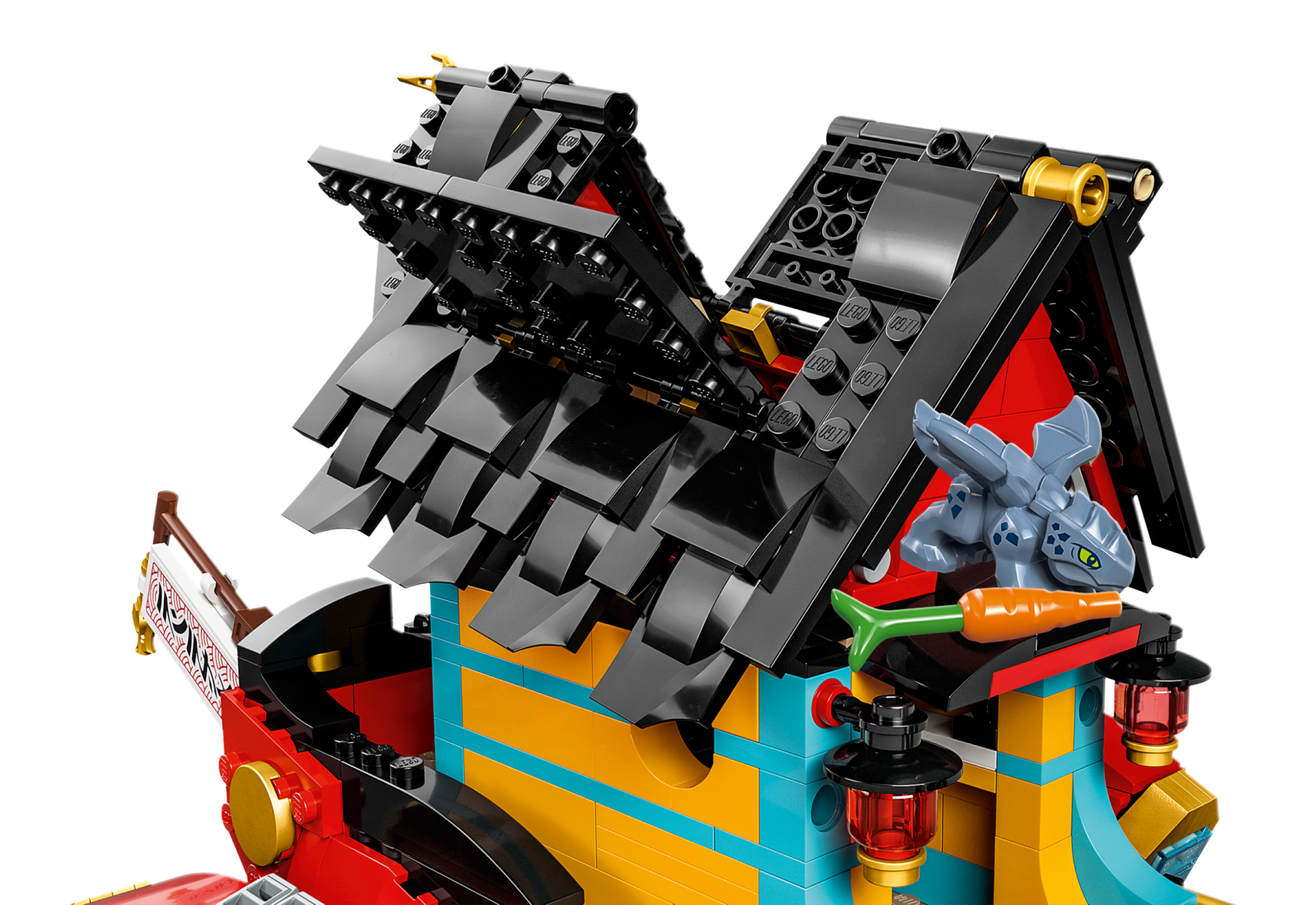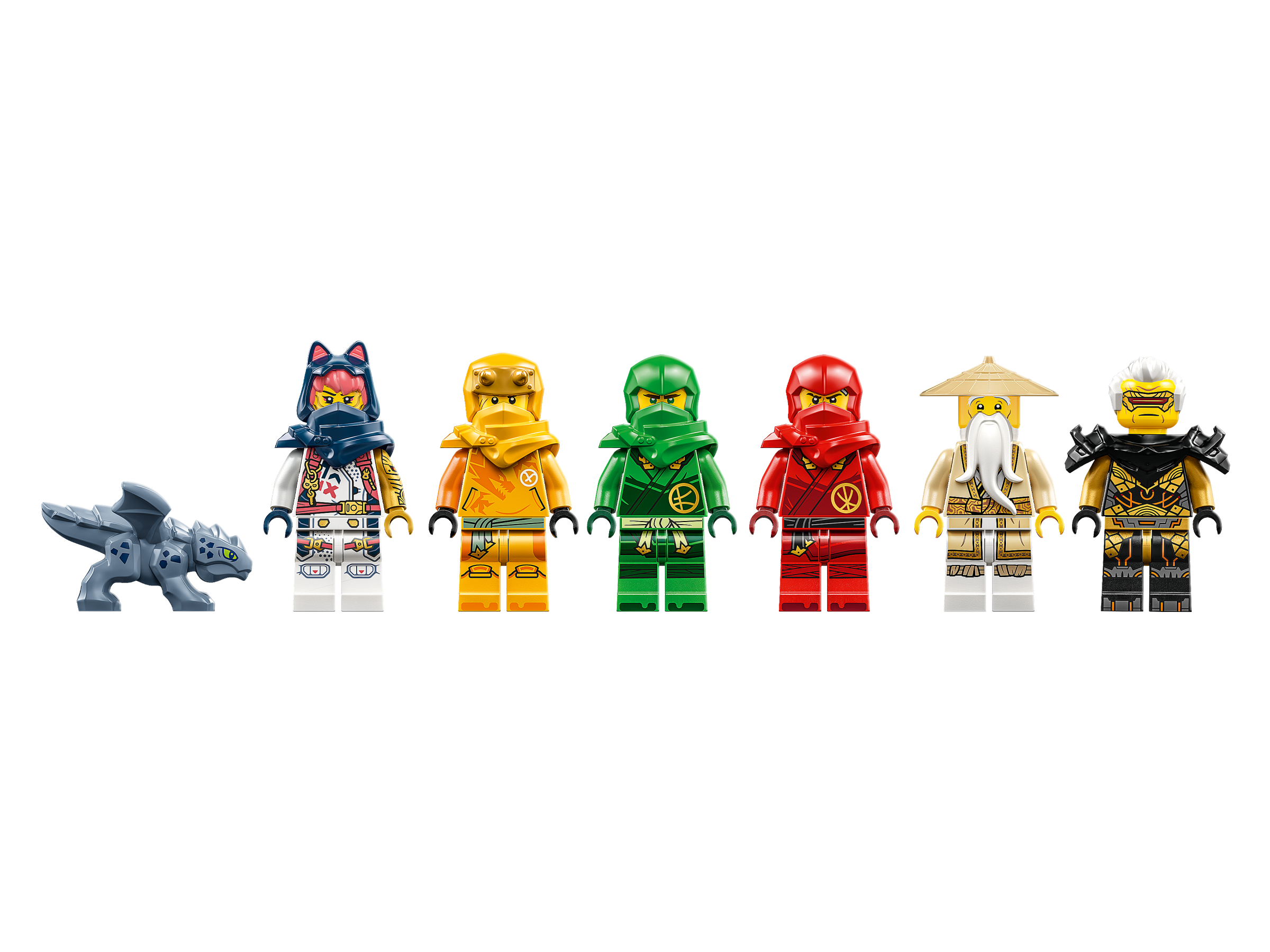 The premium playset comes with aBaby Riyu model and 6 minifigures: Master Wu with his staff, Arin with a grappling hook, Sora, Lloyd and Kai, who each have a golden katana, and Rapton with an Imperium sword and his own grappling hook for imaginative kids to play out gripping scenes from the NINJAGO® Dragons Rising TV series.