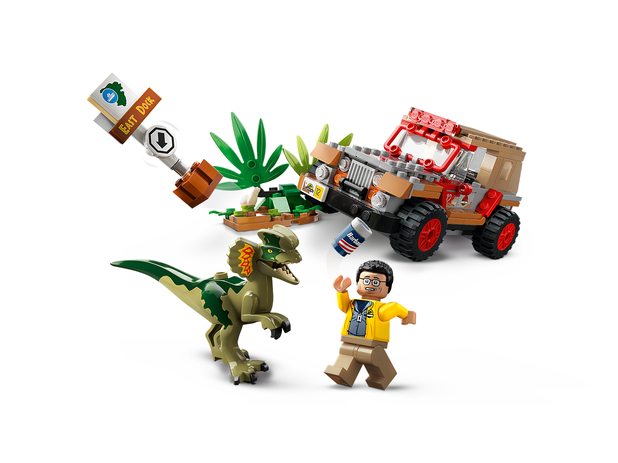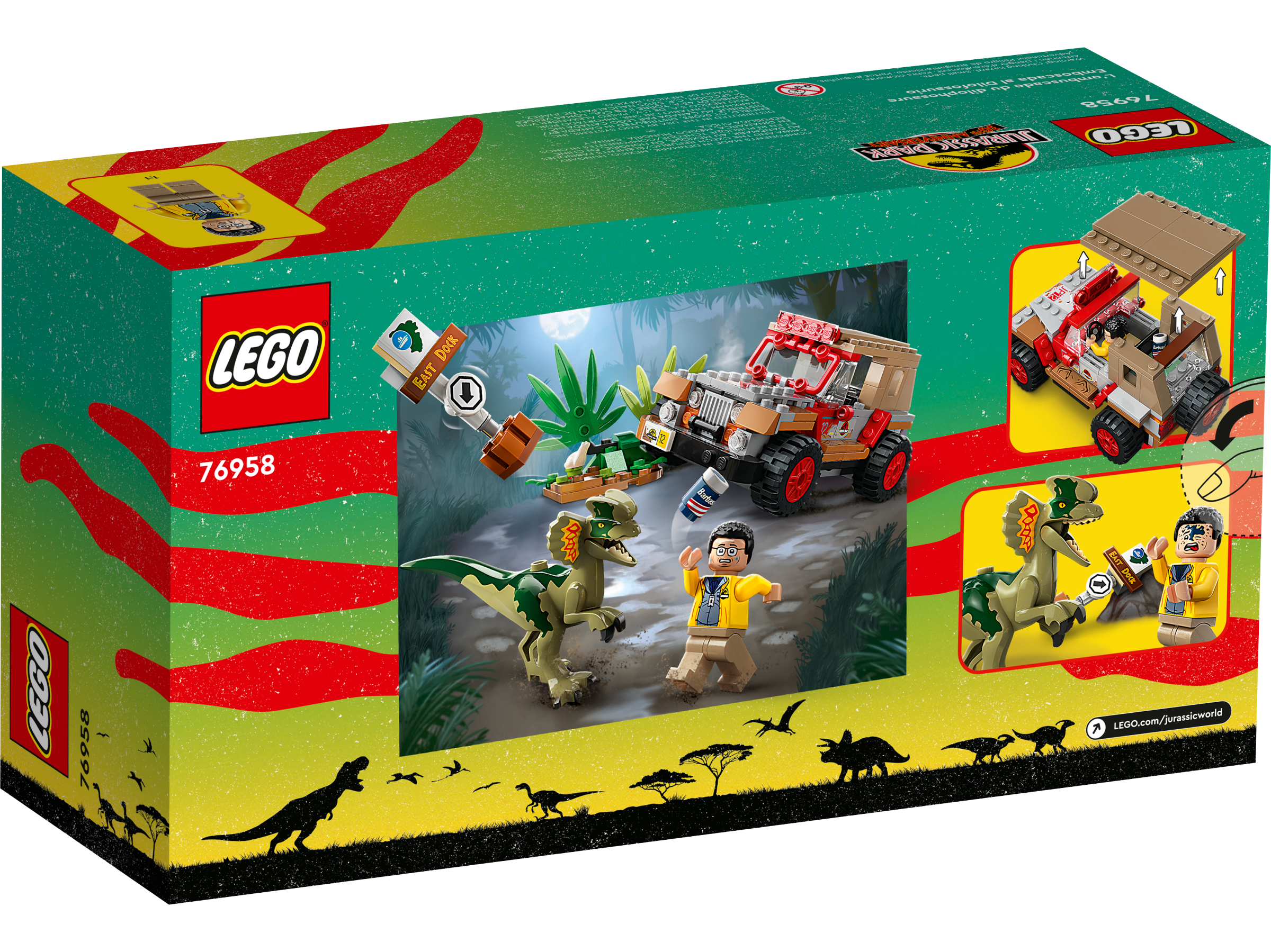 Youngsters can recreate a classic Jurassic Park scene and play out their own stories with this collectible LEGO® Jurassic World Dilophosaurus Ambush (76958) toy building set. A cool gift for kids aged 6 and up, it features a Dilophosaurus figure and a buildable Jurassic Park Jeep® toy with a driver’s seat for the Dennis Nedry minifigure, plus muddy minifigure and dinosaur footprint decoration. There is also a small jungle build, including an ‘East Dock’ sign for the Jeep to knock over like in the movie and a Barbasol can element to inspire imaginative play.