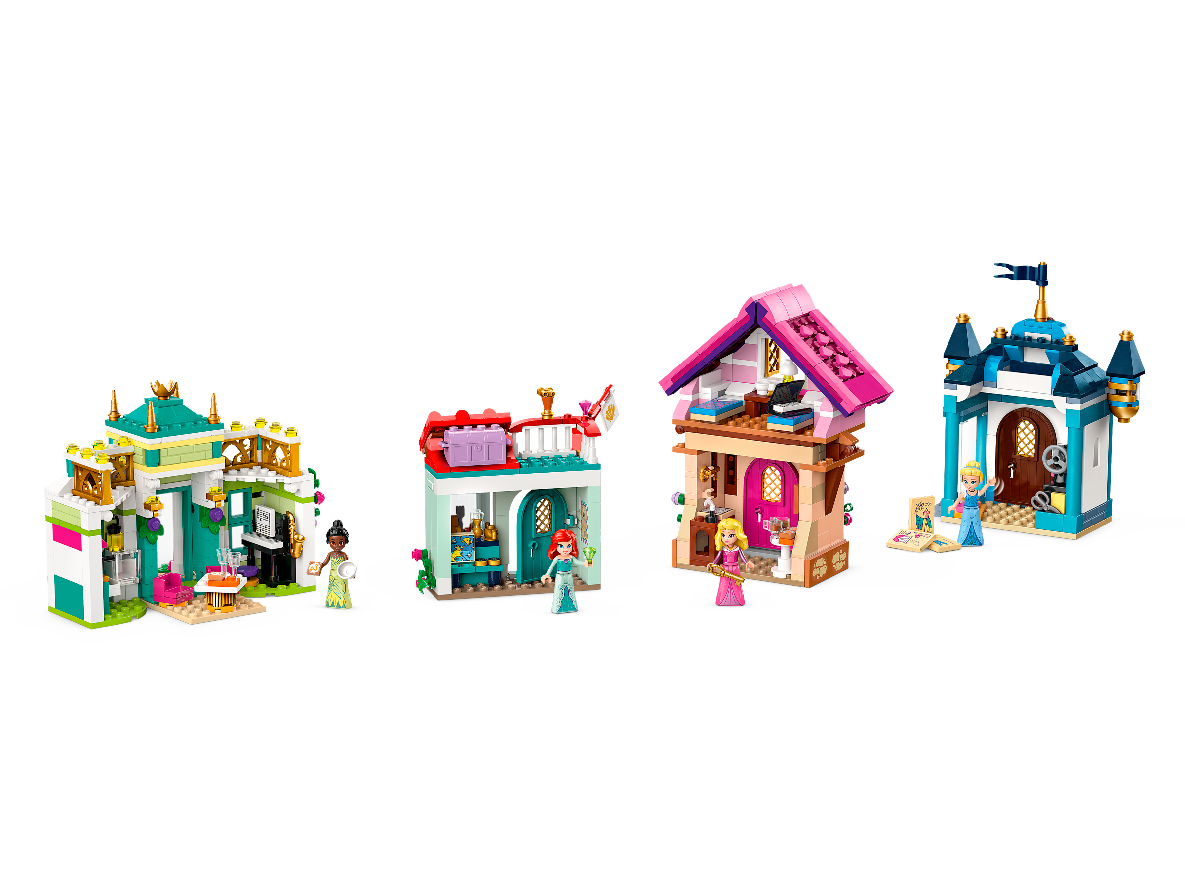 Captivate and entertain Disney Princess fans and kids aged 6 and over with this detailed LEGO® ǀ Disney Princess: Disney Princess Market Adventure (43246) construction playset. The box contains 4 buildable toy buildings, one with a small storage space on top and a small model with a flowerpot, bench and fountain. It also includes Tiana, Aurora, Cinderella and Ariel LEGO ǀ Disney mini-doll figures, plus 2 collectible rings with 4 decorations that can be changed again and again. Kids can design a market adventure then role-play endless stories or imagine new escapades with loads of play starter accessories.