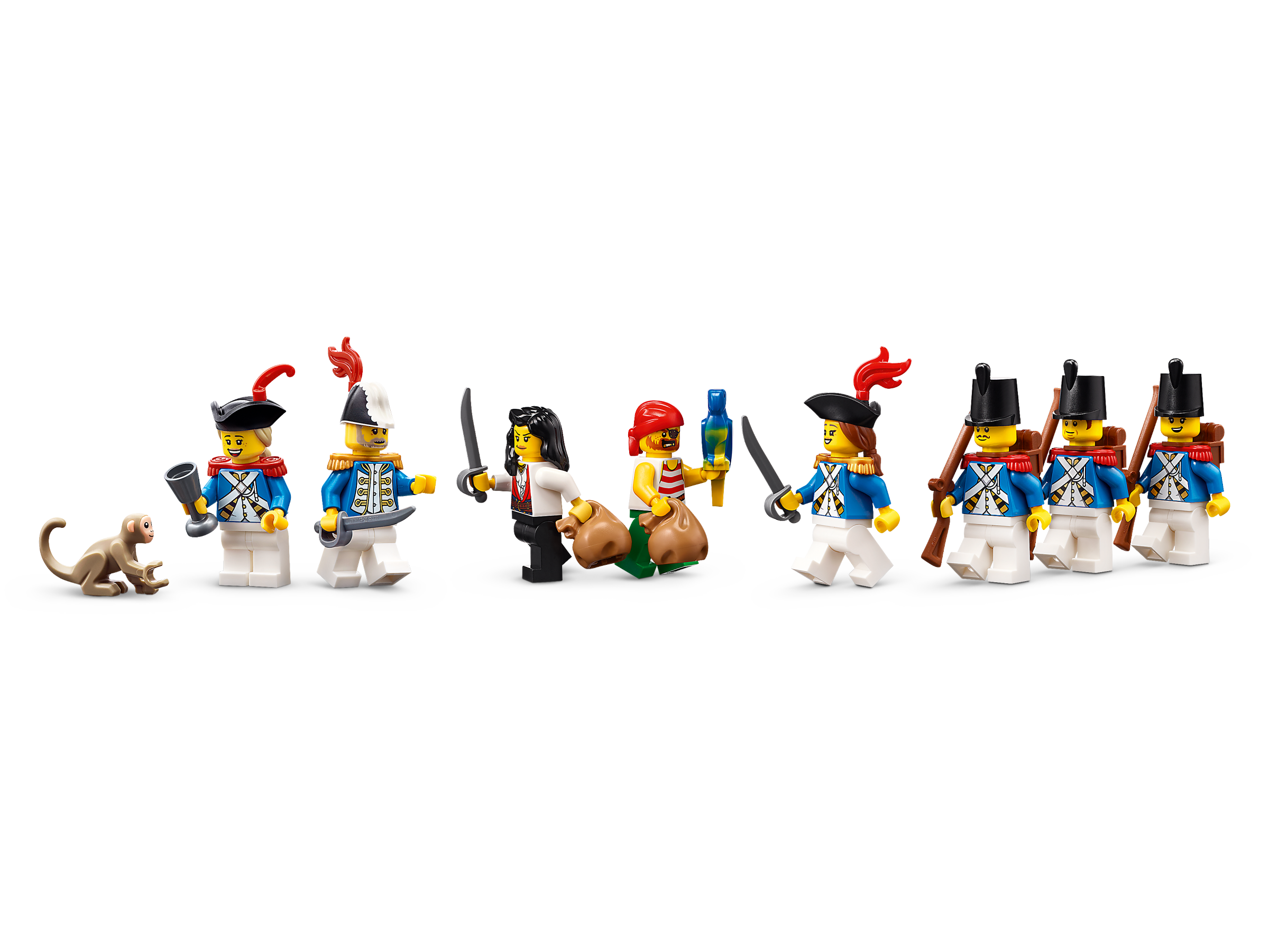 Uncover hidden treasures as you craft the iconic fortress brick by brick, including the admiral’s office, a pirate prison and an array of secret spaces. Combine the modular room sections to create different configurations and stage epic battle scenes with working cannons, 8 minifigures and a cool pirate ship with printed fabric sails.
