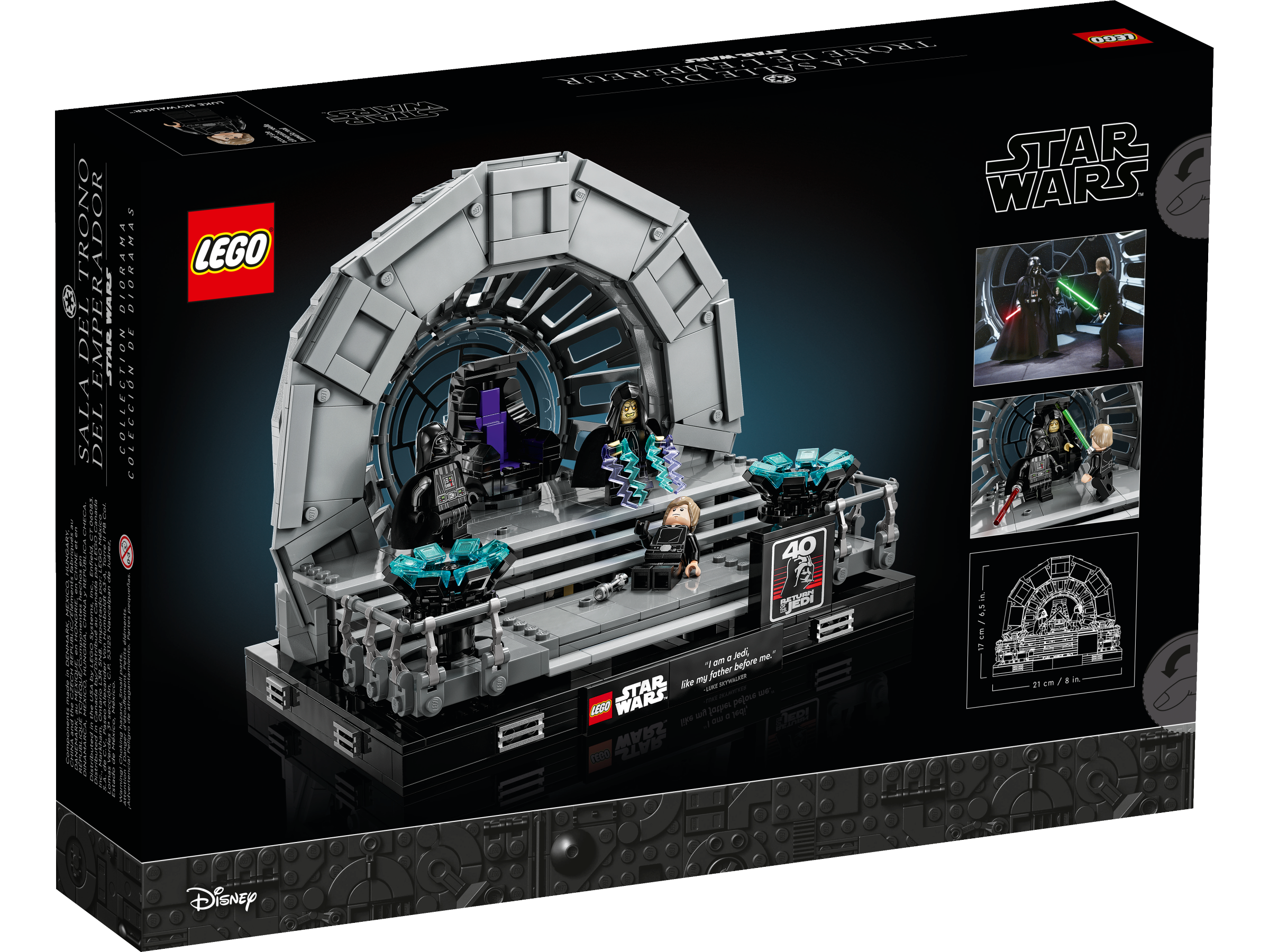 Relive the dramatic climax of the classic Star Wars™ trilogy with this Emperor’s Throne Room Diorama (75352). It is packed with authentic details, including a Death Star window element designed especially for this set and Emperor Palpatine’s rotating throne. Capture the action with Darth Vader and Luke Skywalker LEGO® minifigures, each with lightsabers, and Emperor Palpatine with 2 Sith lightning bolt elements. This build-and-display model is completed with a plaque featuring a famous Luke line(“I am a Jedi, like my father before me.”) and a plaque with the Star Wars: Return of the Jedi 40th anniversary logo.