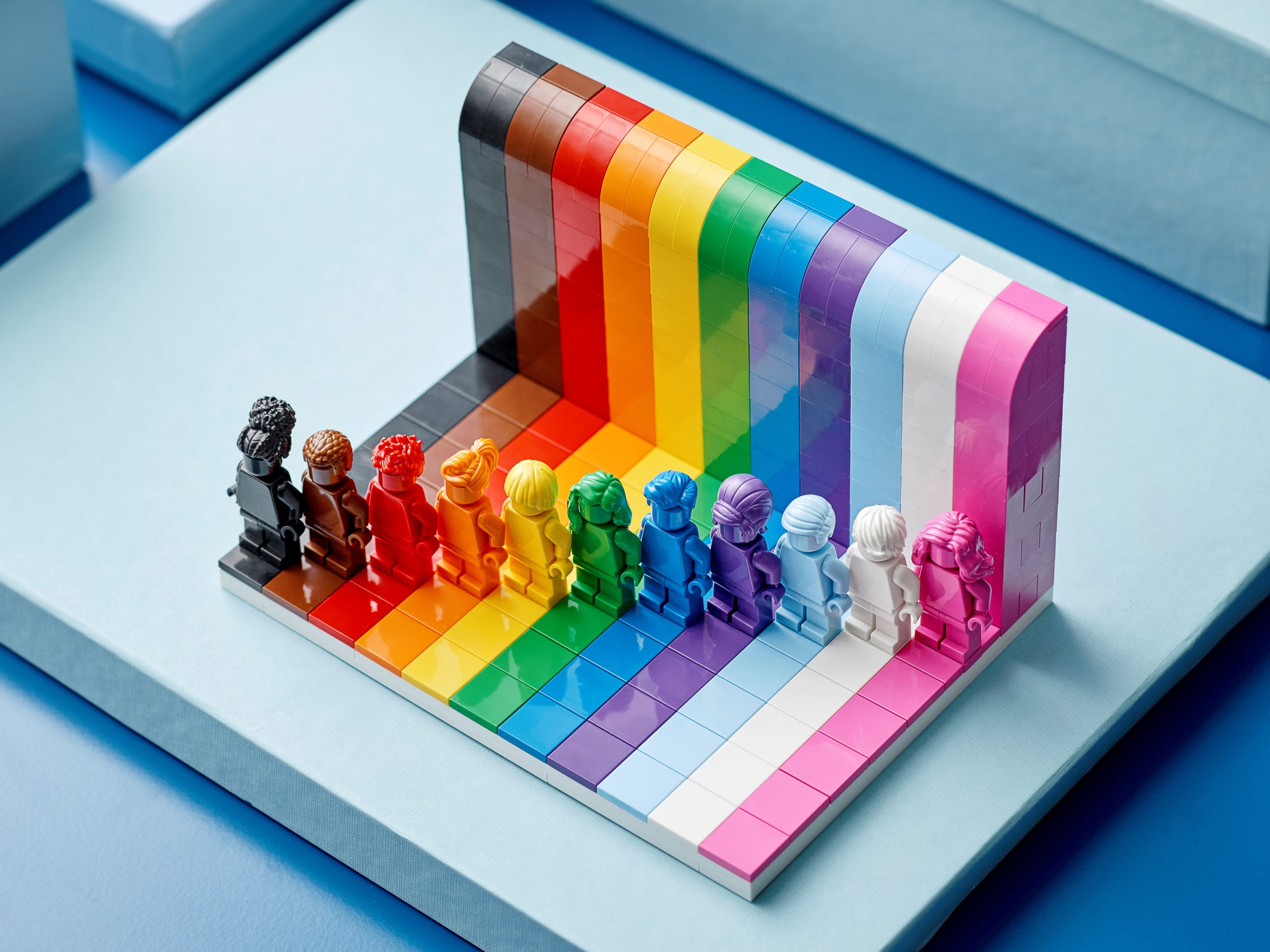Construct your own tribute to positivity and kindness with this LEGO® Everyone is Awesome (40516) building kit. Presented in a spectrum of colors, this buildable display includes 11 monochrome minifigures against a rainbow backdrop. Each minifigure features its own color scheme with matching hairpiece, showcasing the diversity we see in the world around us. Display your model with pride to show that although we are all different, we join together in a celebration of inclusivity and love.